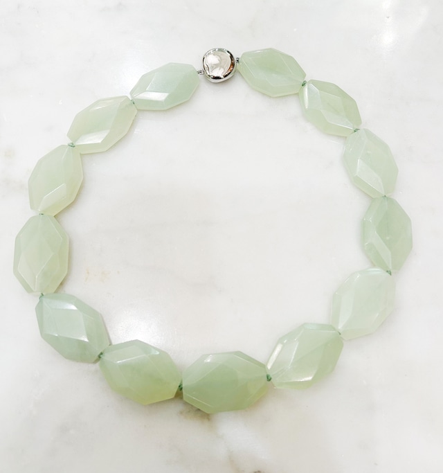 八角形のニュージェイドの大ぶりビーズのネックレス