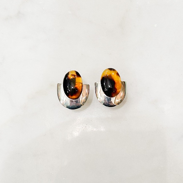 オーバルのべっ甲のカボーション(上散斑)にシルバープレートのピアス(シルバーポスト)