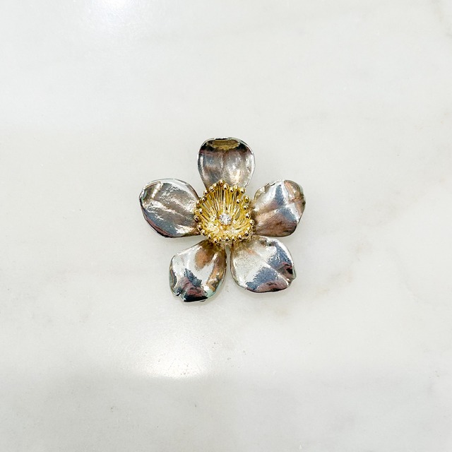 シルバーにK18、ダイヤモンドの桜のブローチ