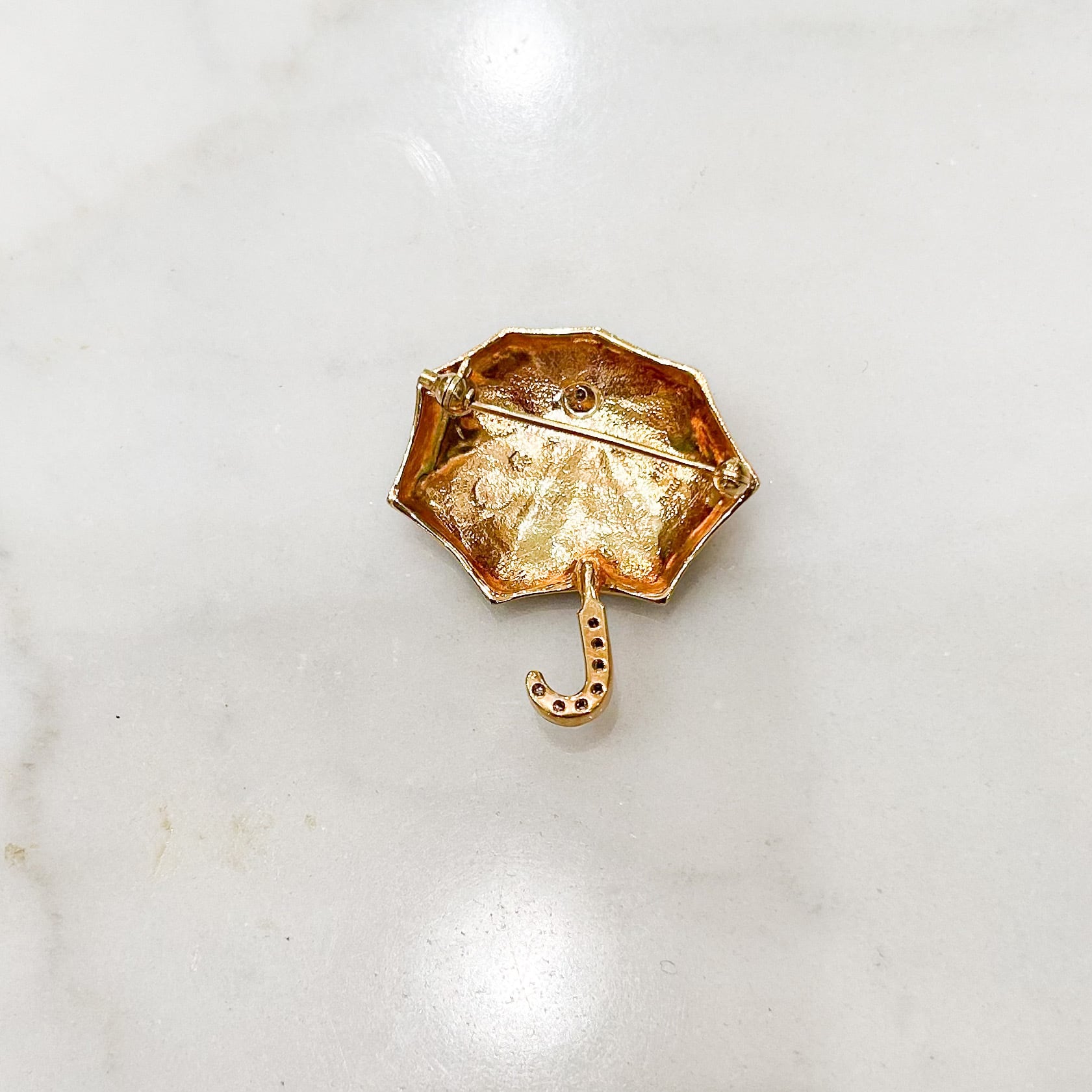 18金にプラチナで覆輪されたダイヤモンド(0.14ct)の傘のブローチ