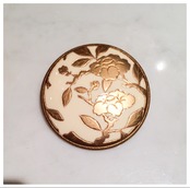 象牙色の樹脂に金彩 椿のブローチ