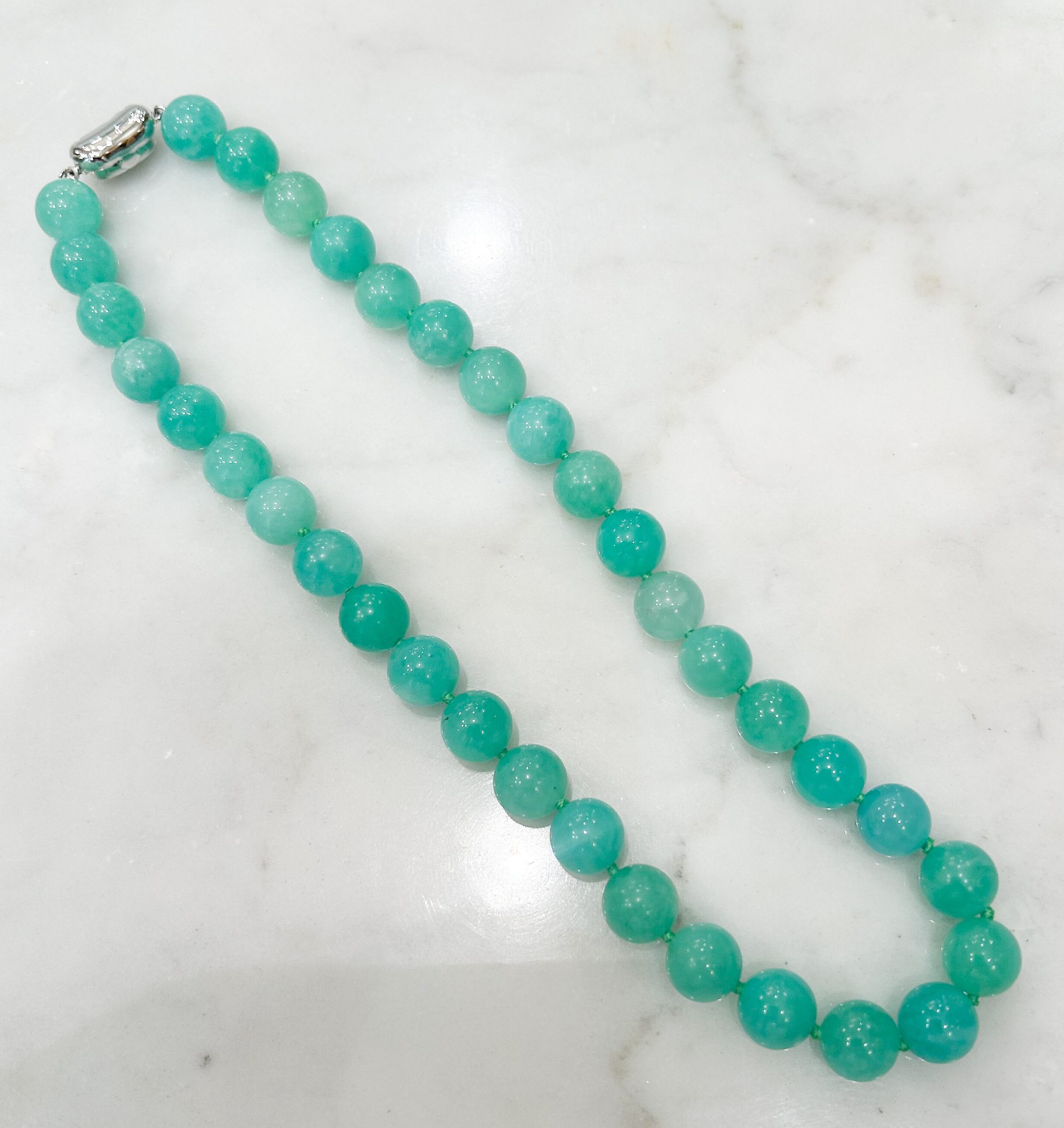 ブルーグリーンのアマゾナイト(10mm)のシンプルなネックレス