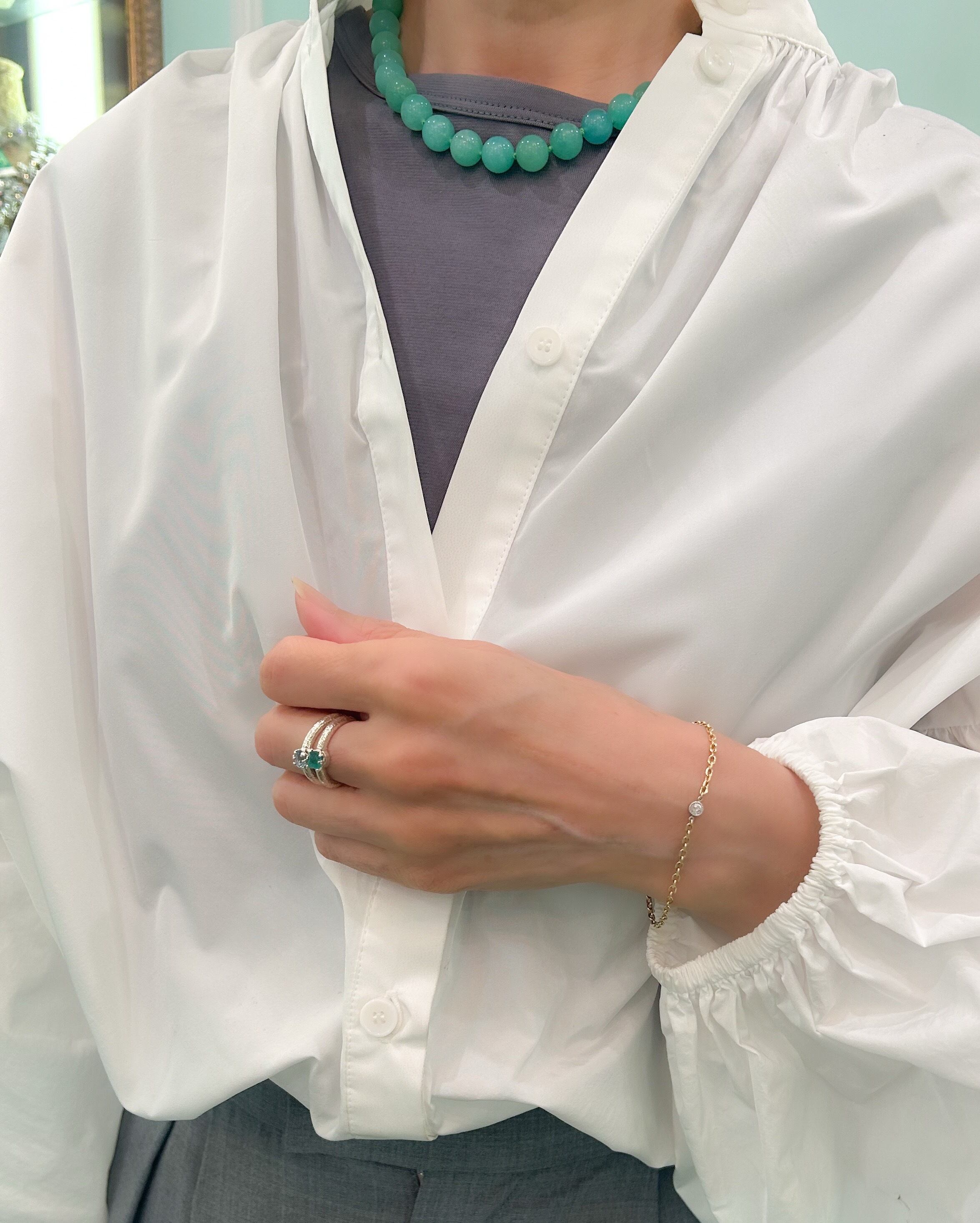 爽やかなトーンの装いにピッタリな夏のオシャレを楽しくしてくれるネックレスです。