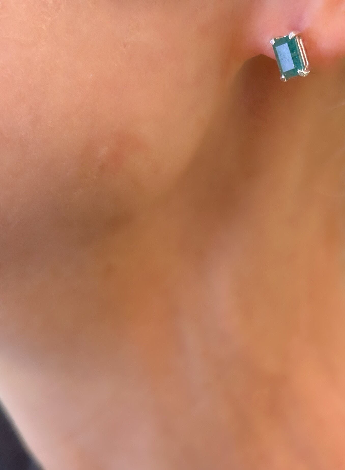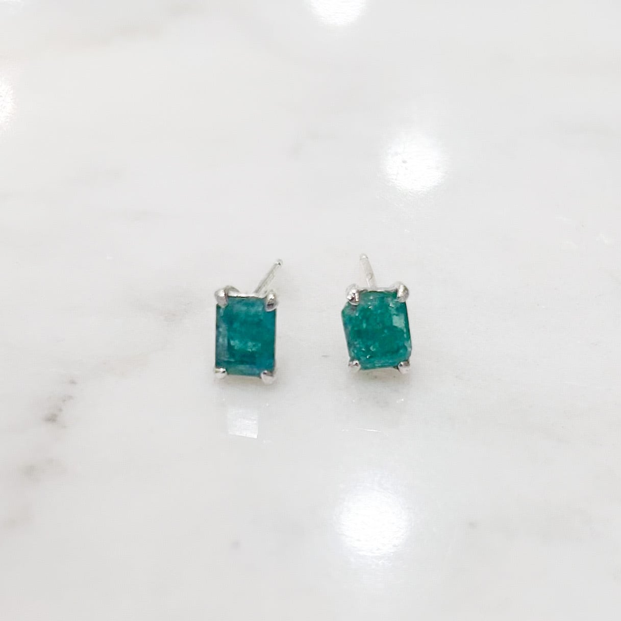 小さな四角いエメラルド(0.92ct)のピアス(シルバーポスト)