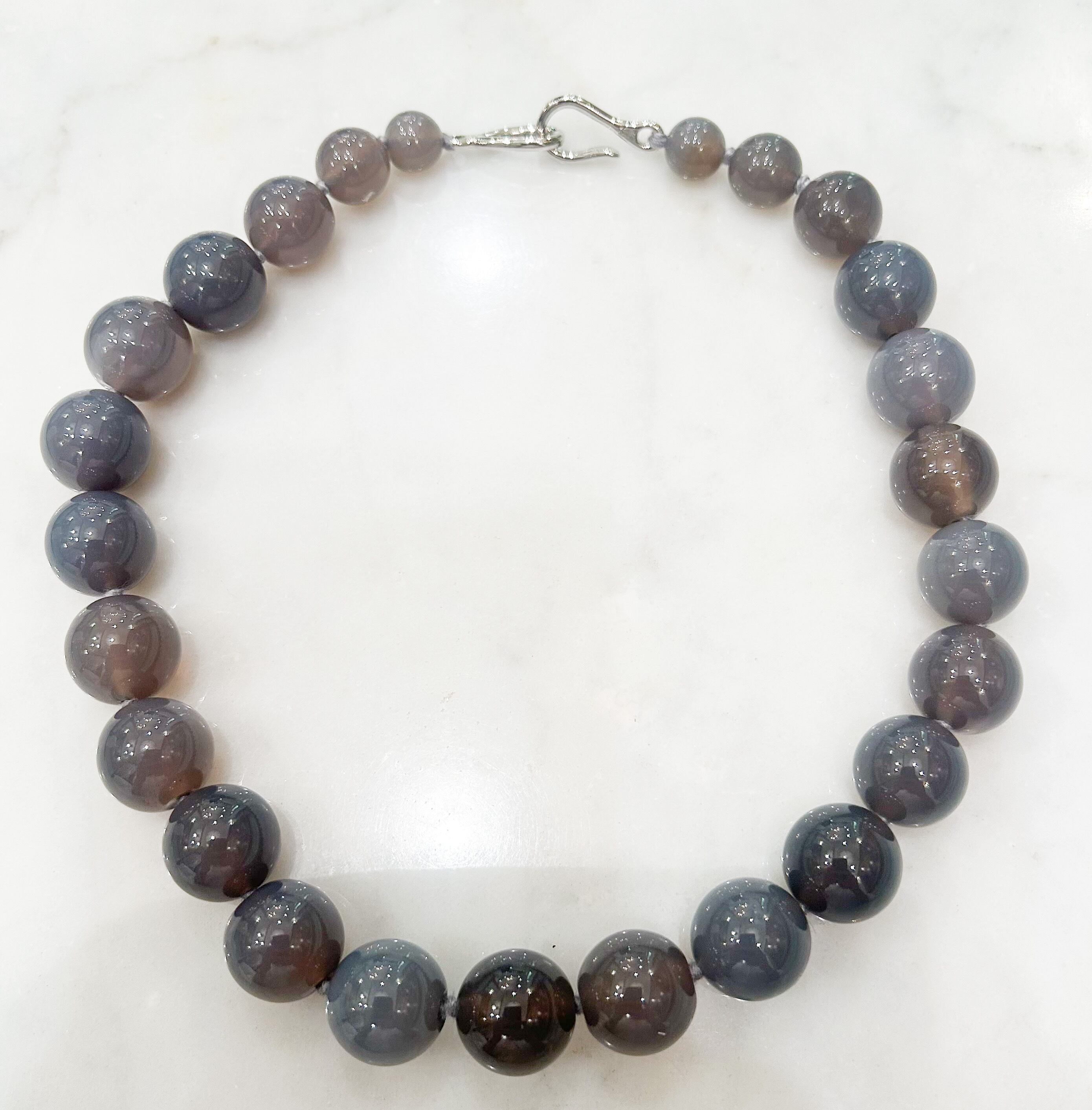 大粒グレーアゲート(16mm)のシンプルなネックレス