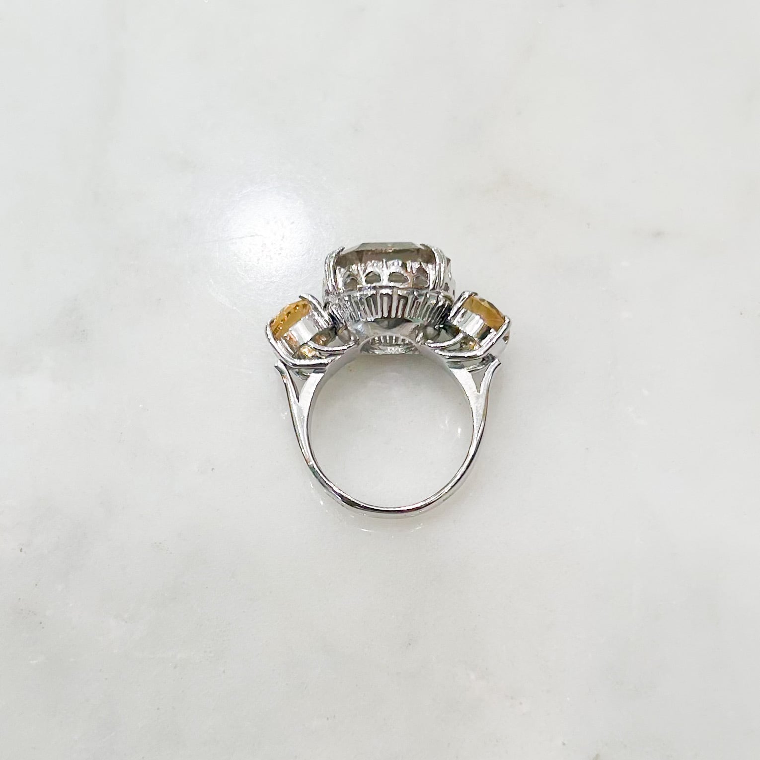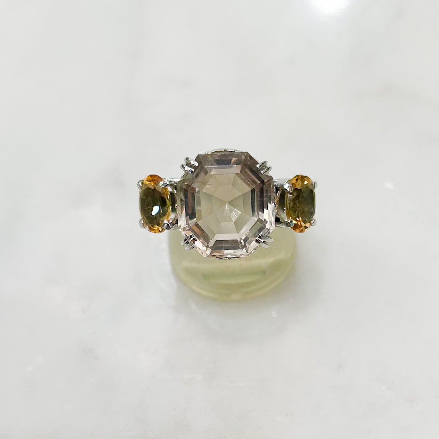 スモーキークォーツ(8.42ct)のサイドにシトリン(1.96ct)のシンプルな枠のリング