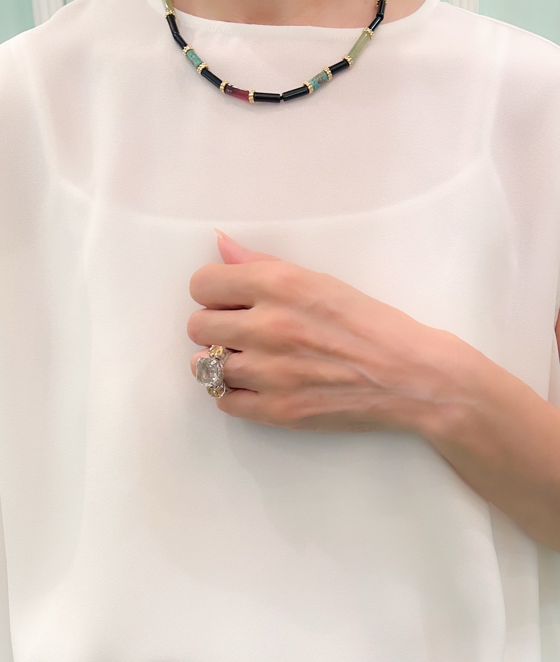 涼しげな水晶系のリングでバイカラーなのでつけるのも楽しい雰囲気です。