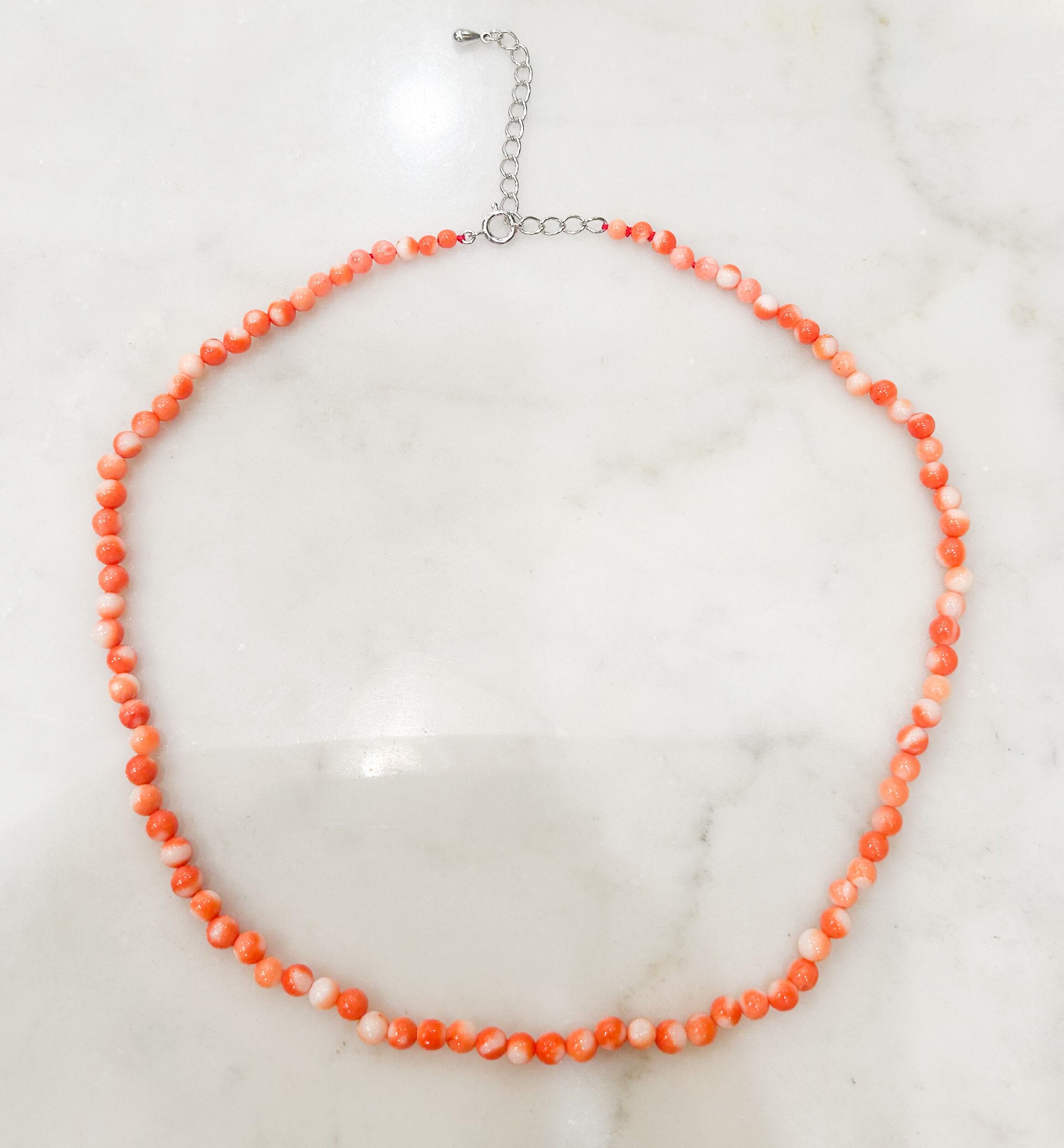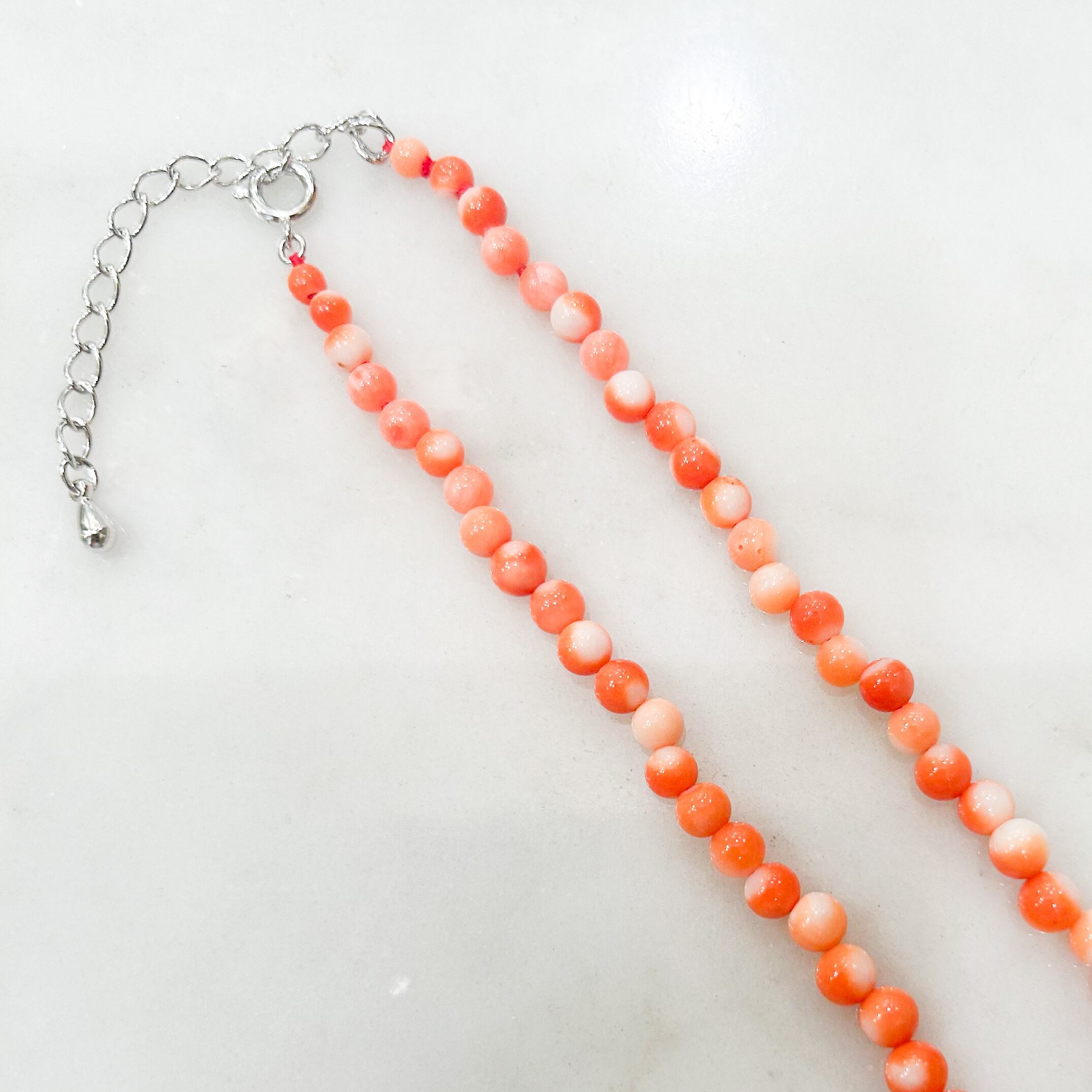 直径5mm弱の珊瑚玉をシンプルに繋いで作ったネックレスです。