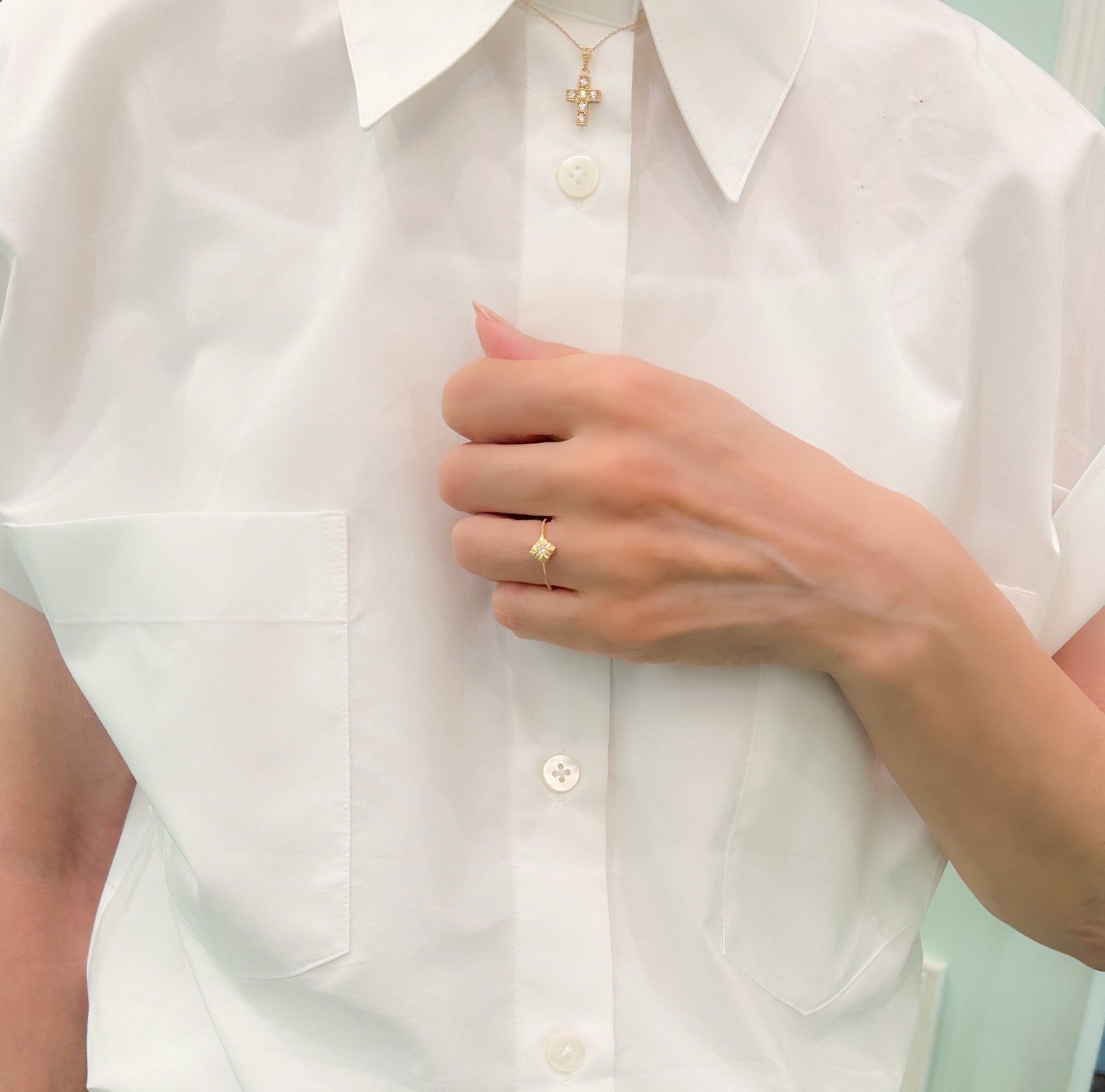その繊細でやわらかな輝きの真ん中にはキラッと輝くダイヤモンドをセット。