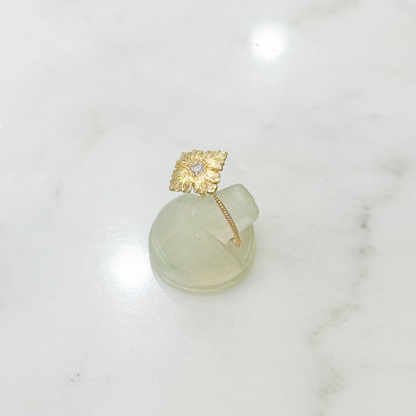 少しマットな金の輝きの中でキラッと小さなダイヤモンドが星のように光りを放ちます。