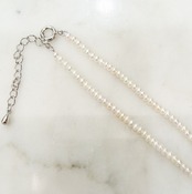 その小さなパールをシンプルに繋いで、長さを変えることができる金具でネックレスにしています。