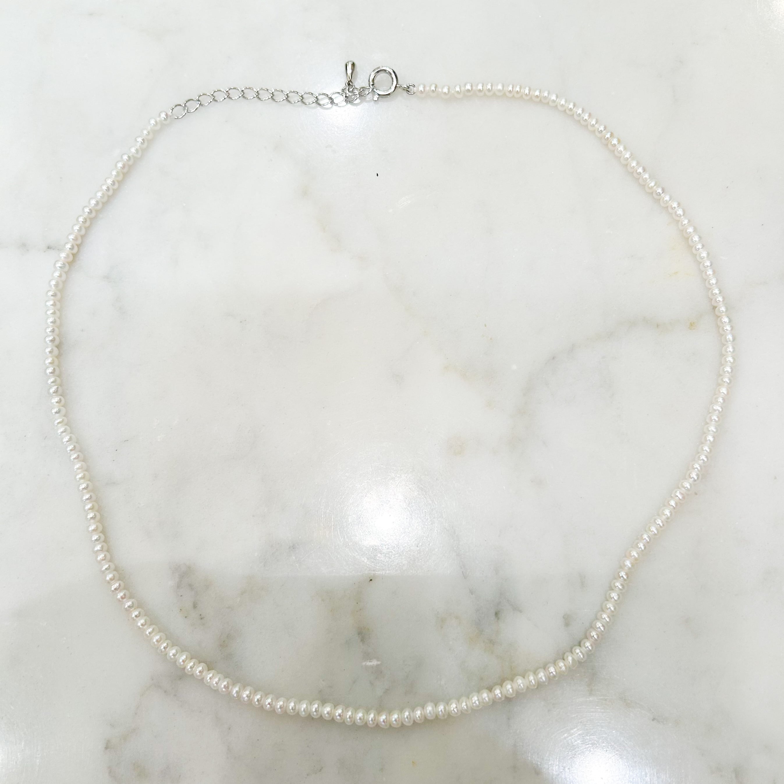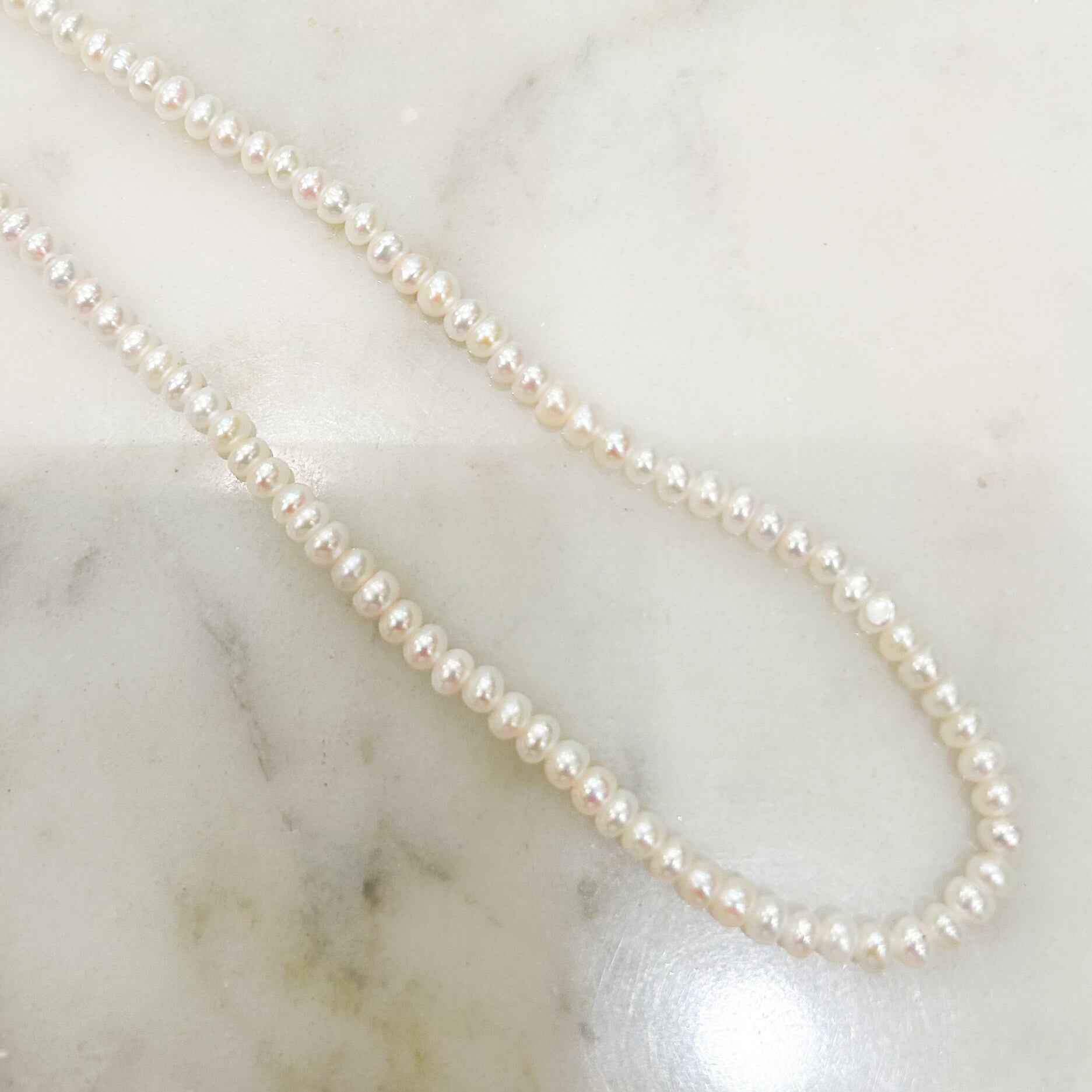 少しペタンとした形のパール(3.5〜4mm)のネックレス