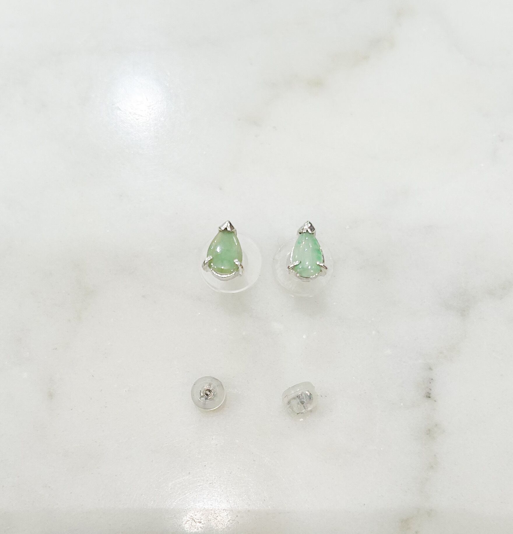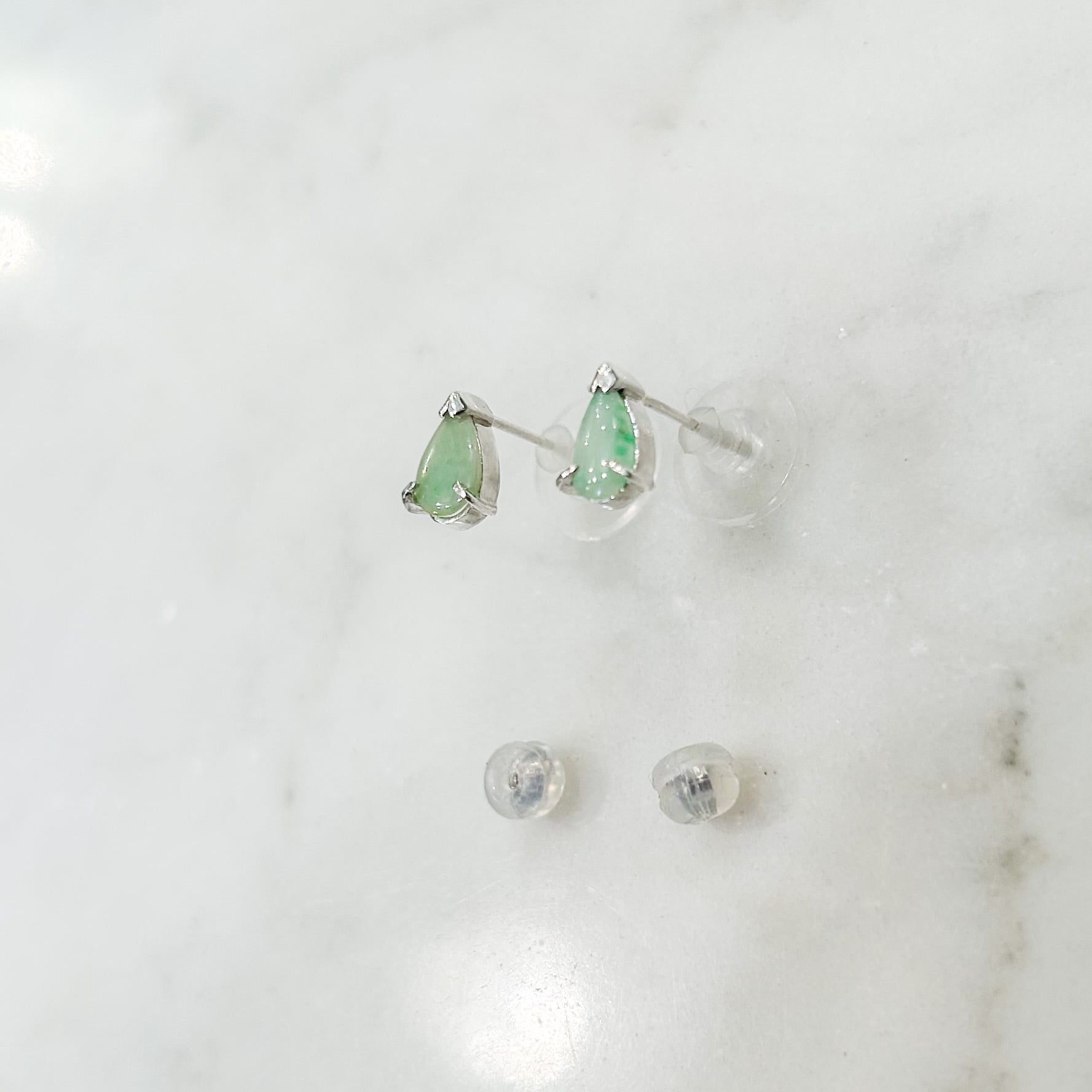小さなしずく型の翡翠のシンプルなシルバーピアス