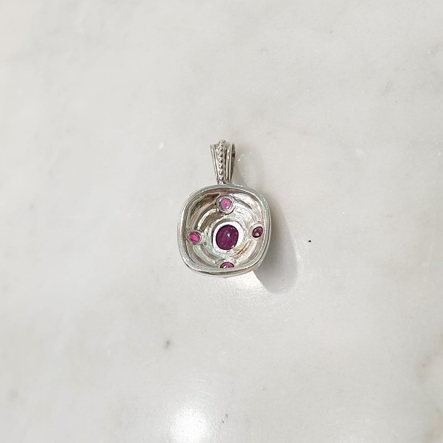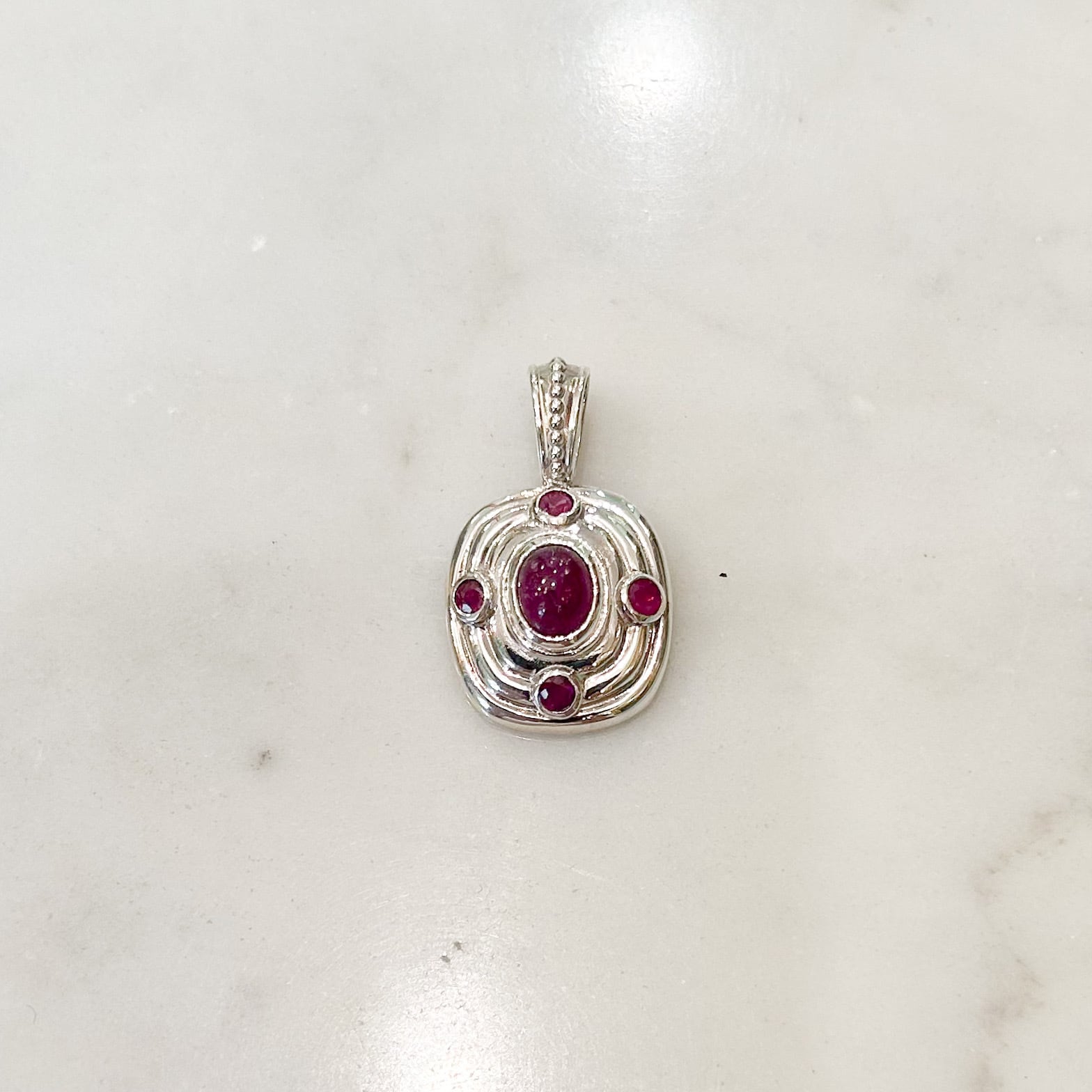 楕円形のルビー(2.02ct)を4つの小さなルビーが取り巻くシルバーペンダント(チェーン別)