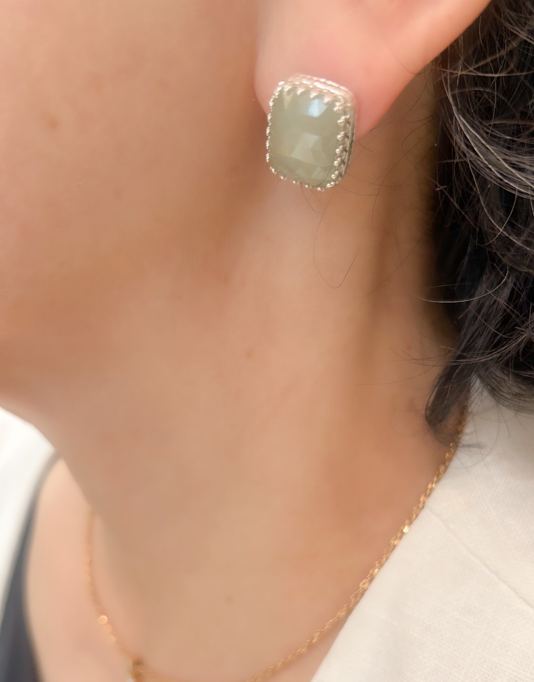 肌の色に馴染みながらも美しく耳元でキラキラと輝いてくれるので、お顔映りも明るく見えます。