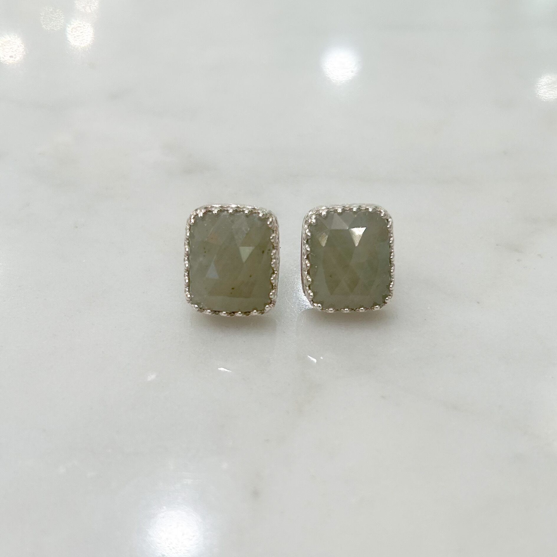 シルバーで王冠留めされた四角いライトイエローのサファイア(15.59ct)のピアス(シルバーポスト)