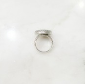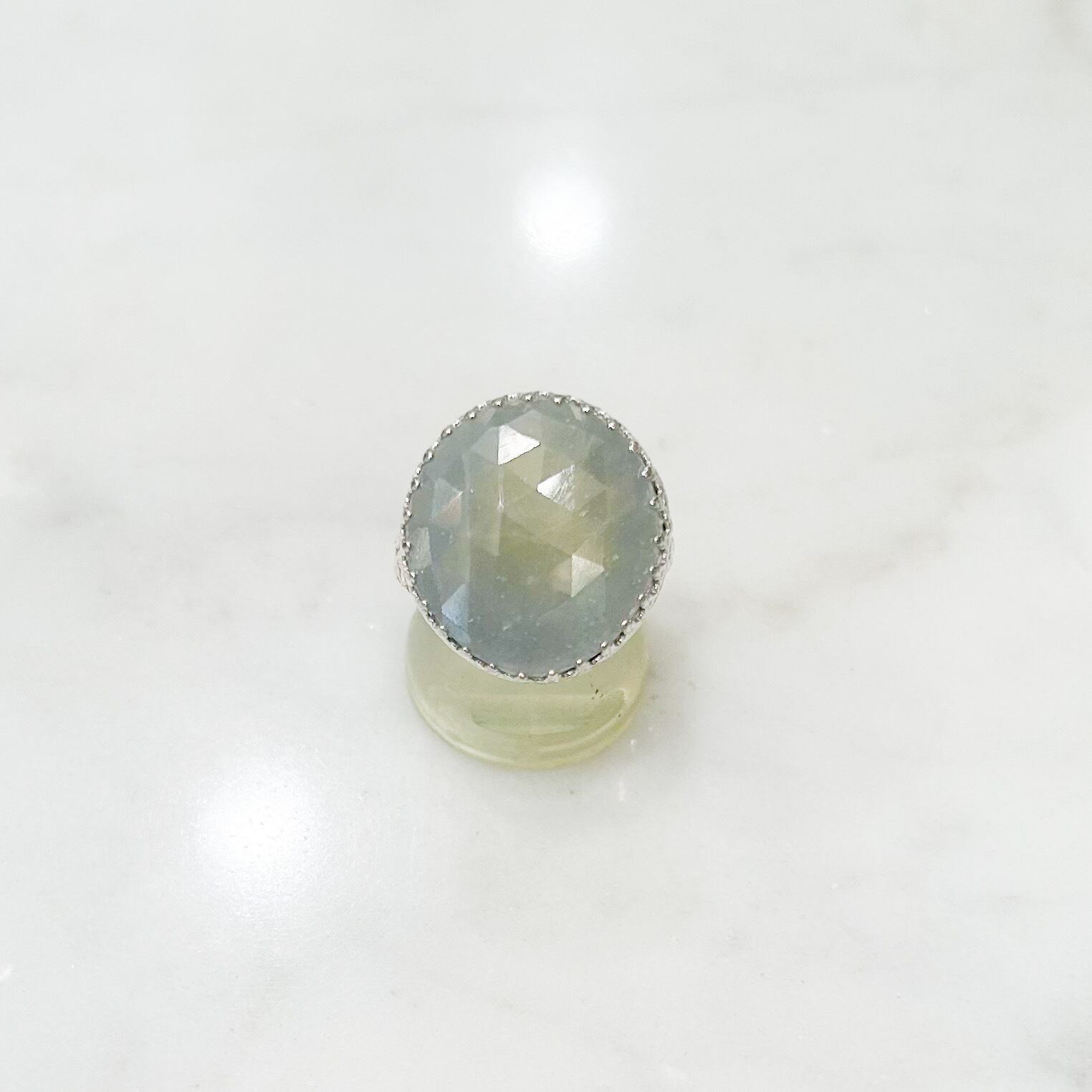 シルバーで王冠された円形のブルーグレーとライトイエローのサファイア(12.77ct)のリング