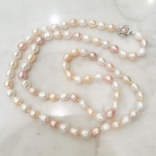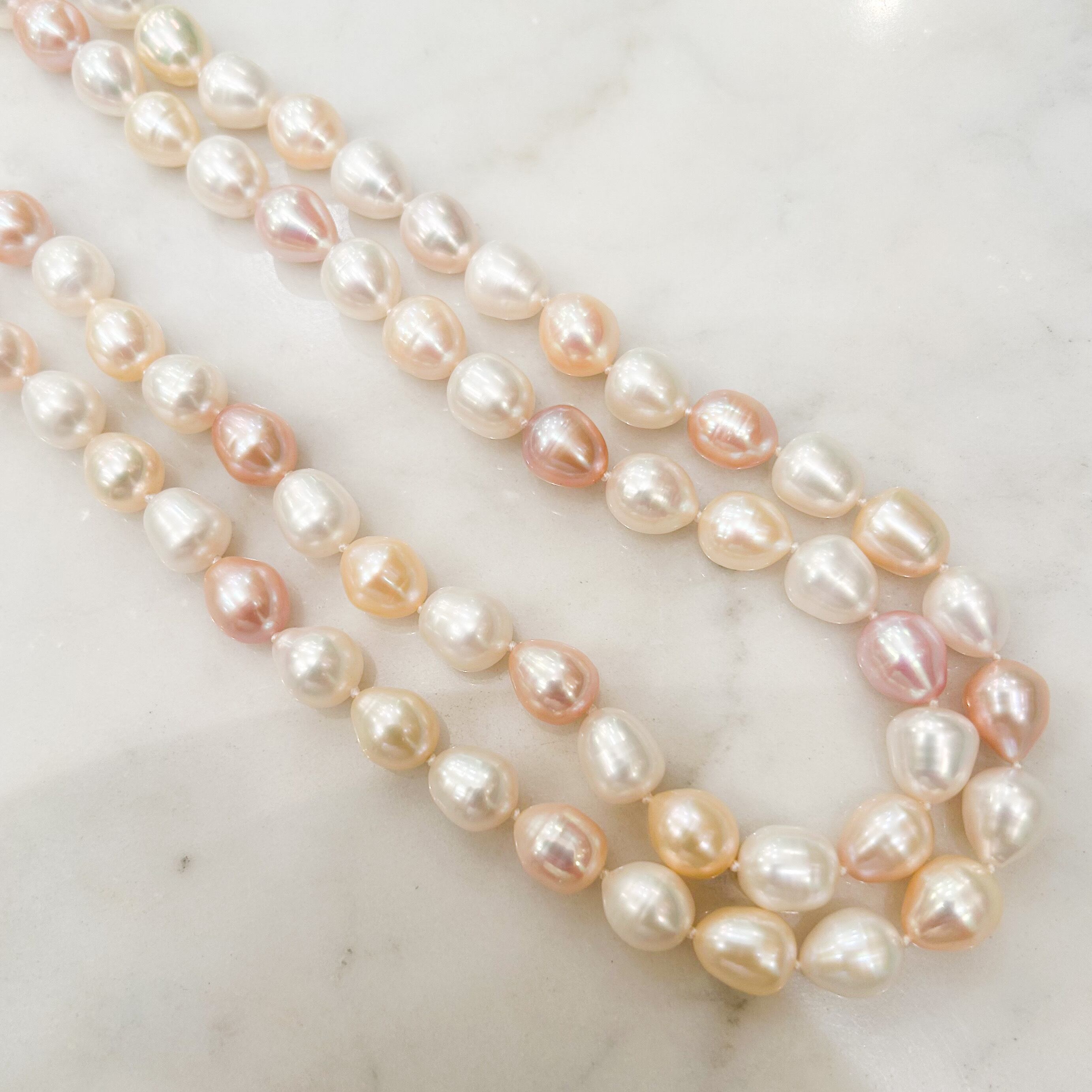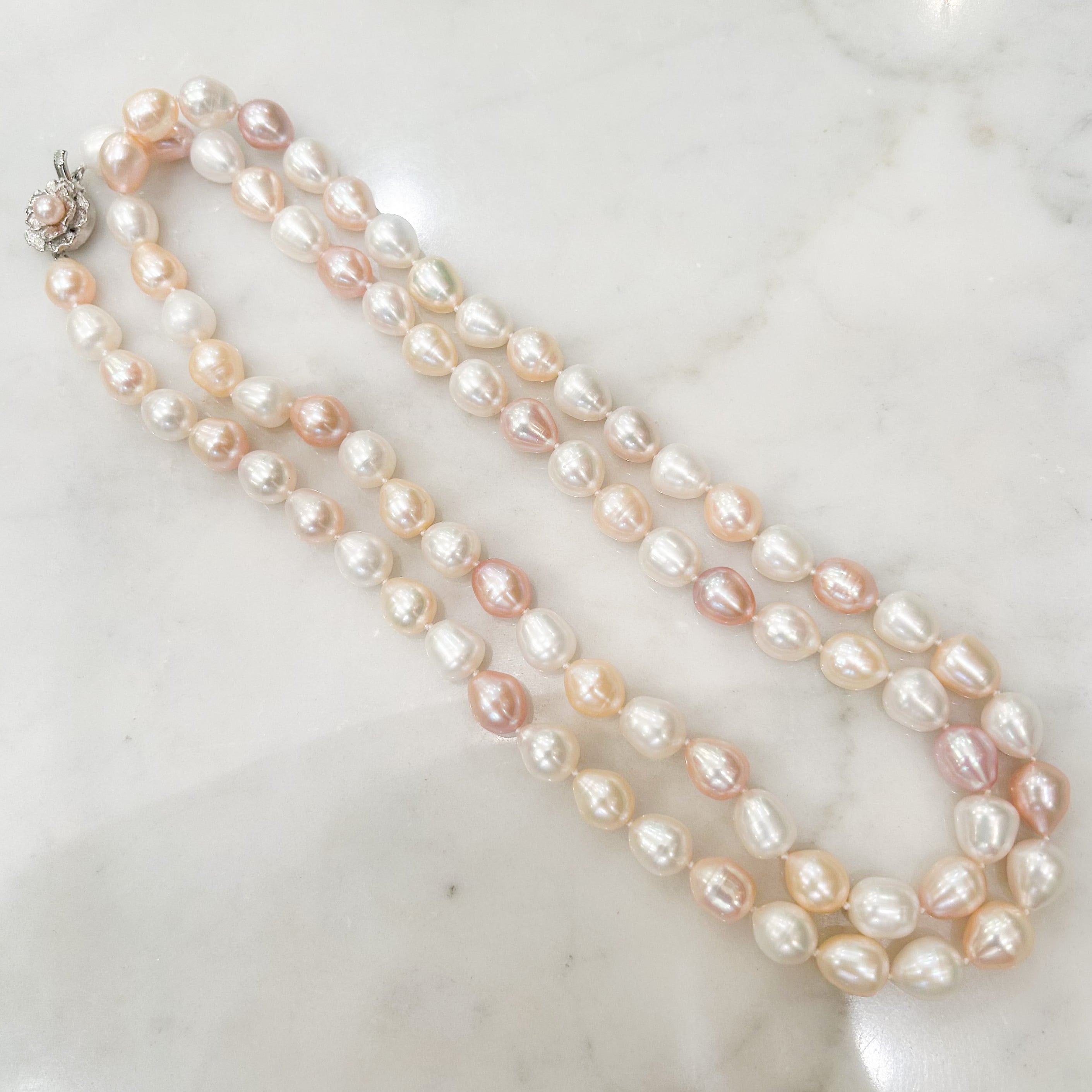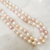 コロンとしたしずく型のような淡水パールは淡いトーンのマルチカラー。