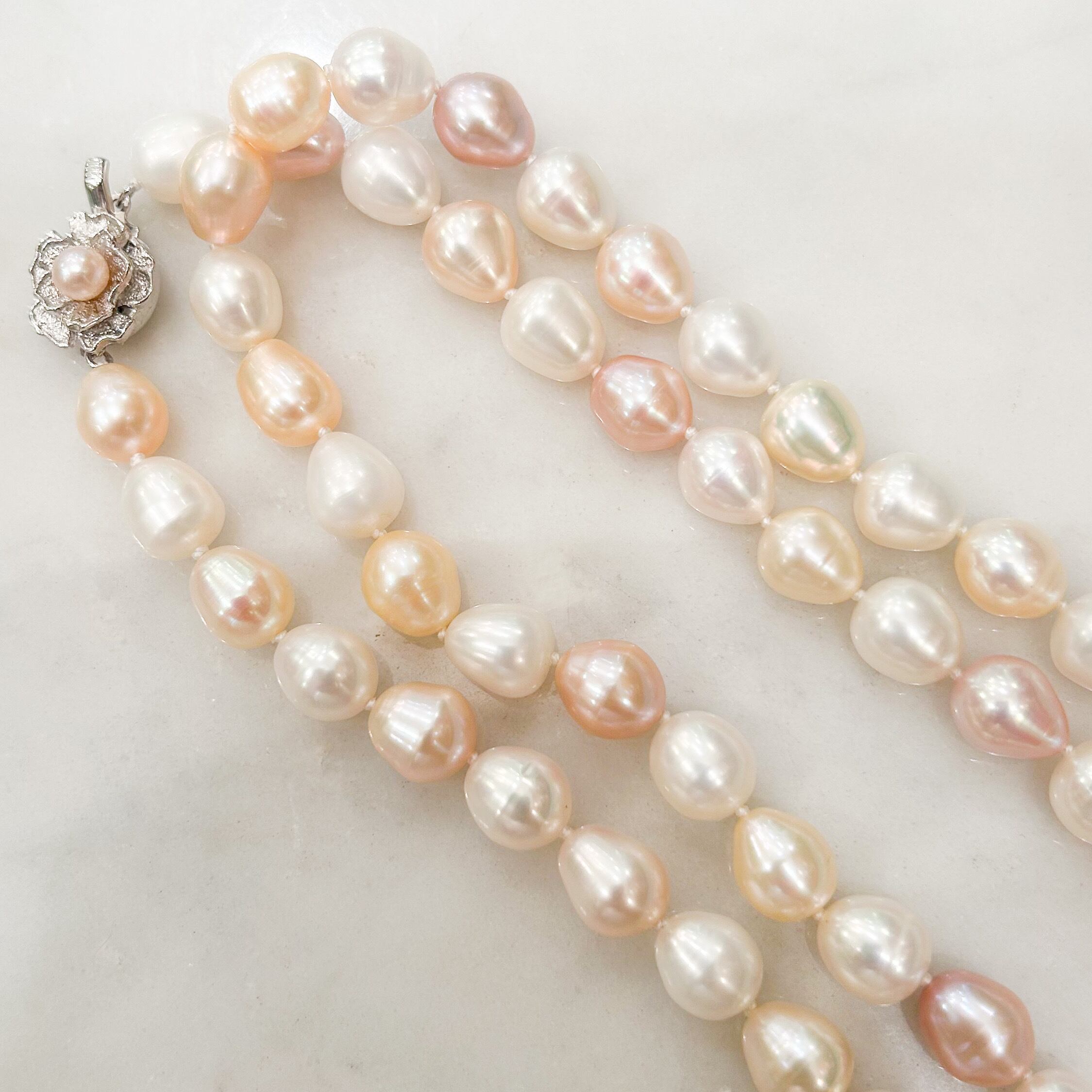それぞれ色も形も異なるバロックパールをシンプルにつなげたネックレスです。