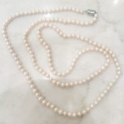 白くて丸に近い形の真珠をシンプルに繋いで作ったロングネックレスです。
