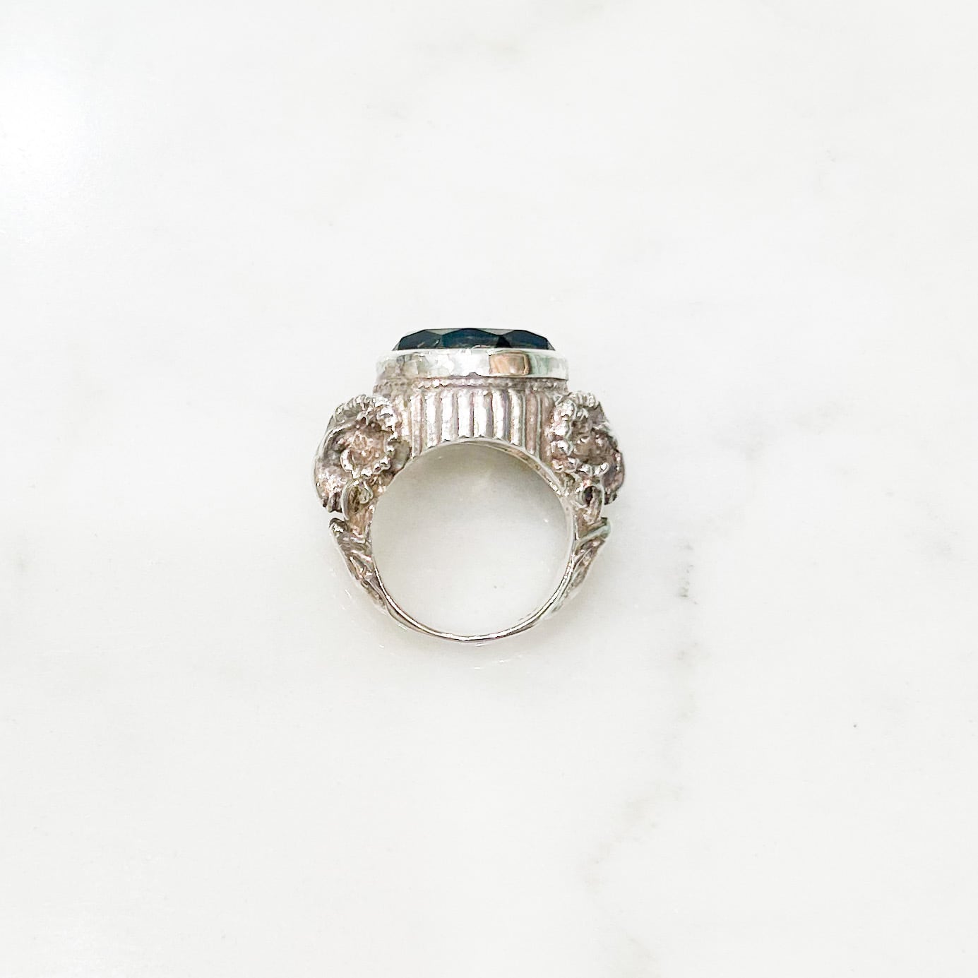 魅力的なスモーキークォーツを載せたのは腕の部分の両サイドに山羊がデザインされた銀の山羊リング。