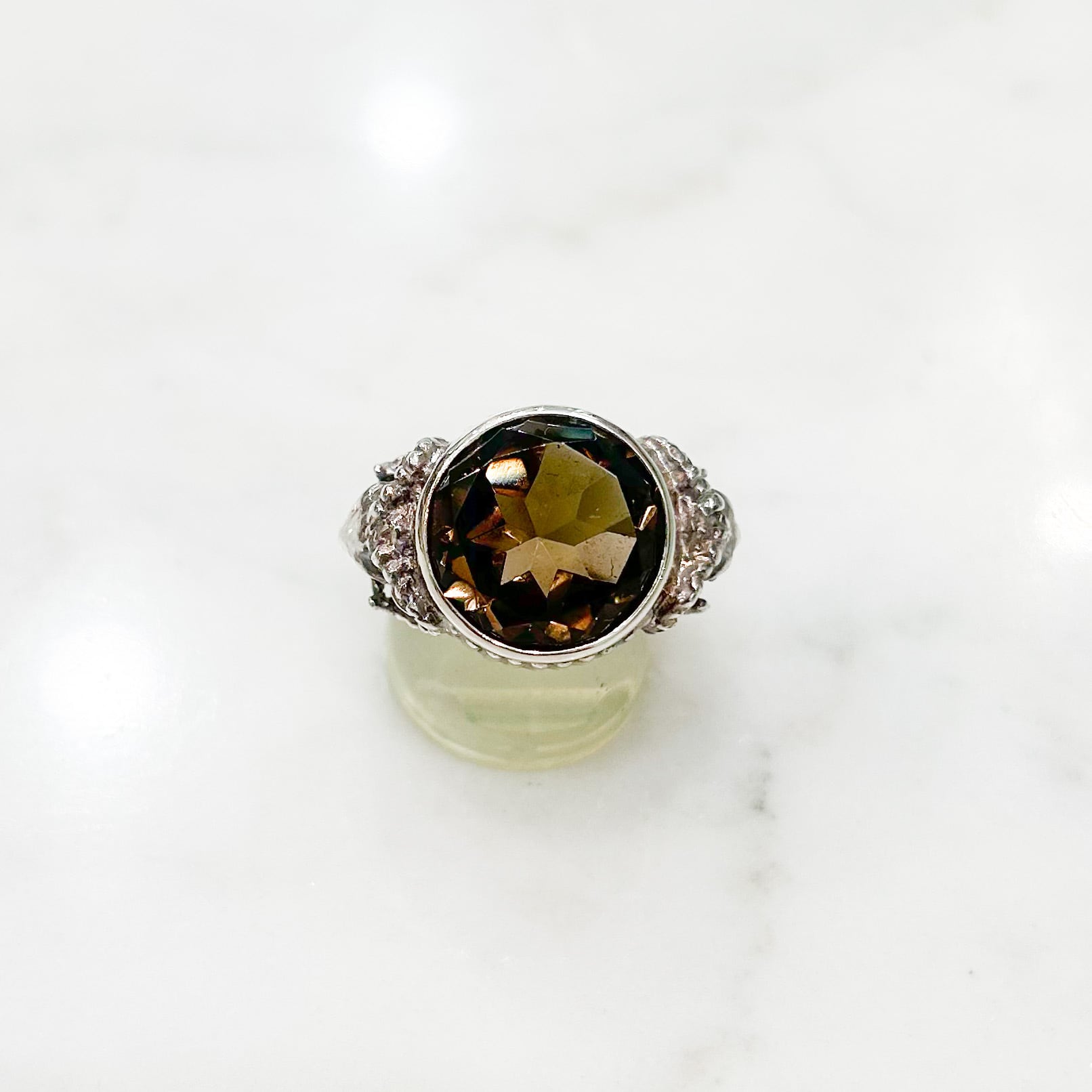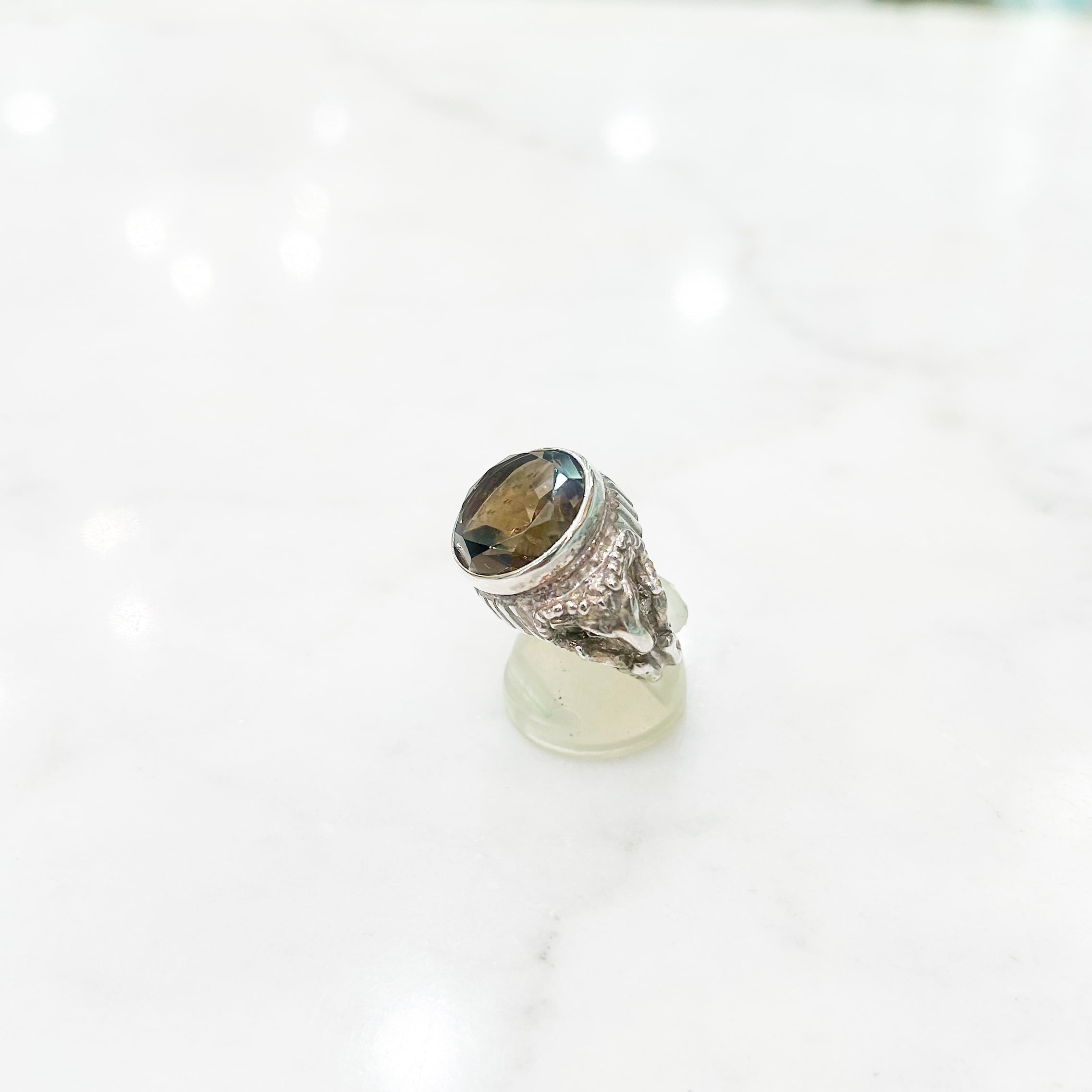 覆輪留めされたスモーキークォーツ(12.45ct)の銀の山羊リング