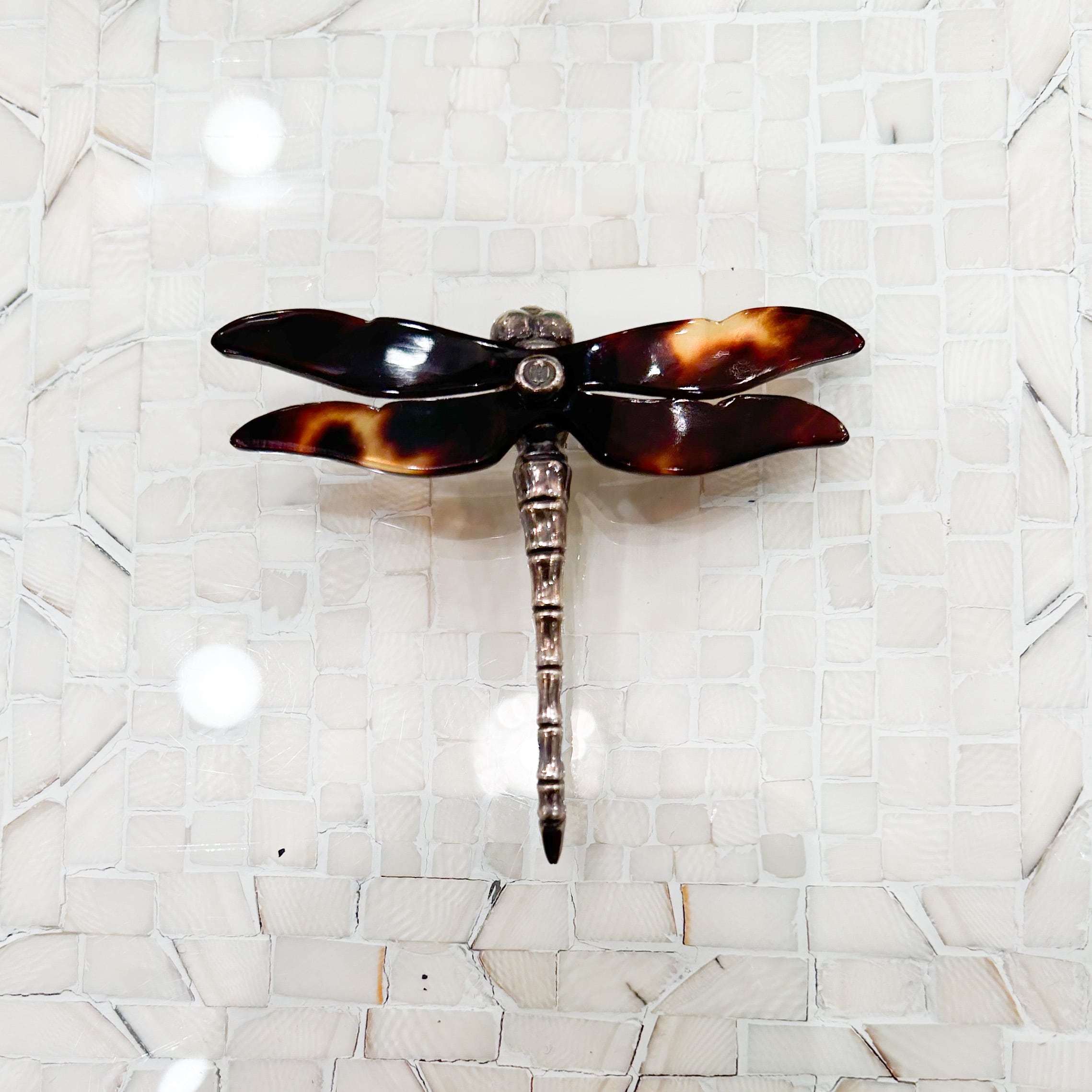 シルバーにべっ甲の羽のトンボのブローチ(小)