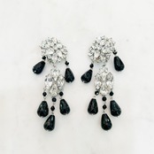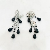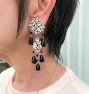 ラインストーンとオニキスの揺れる大ぶりイヤリング