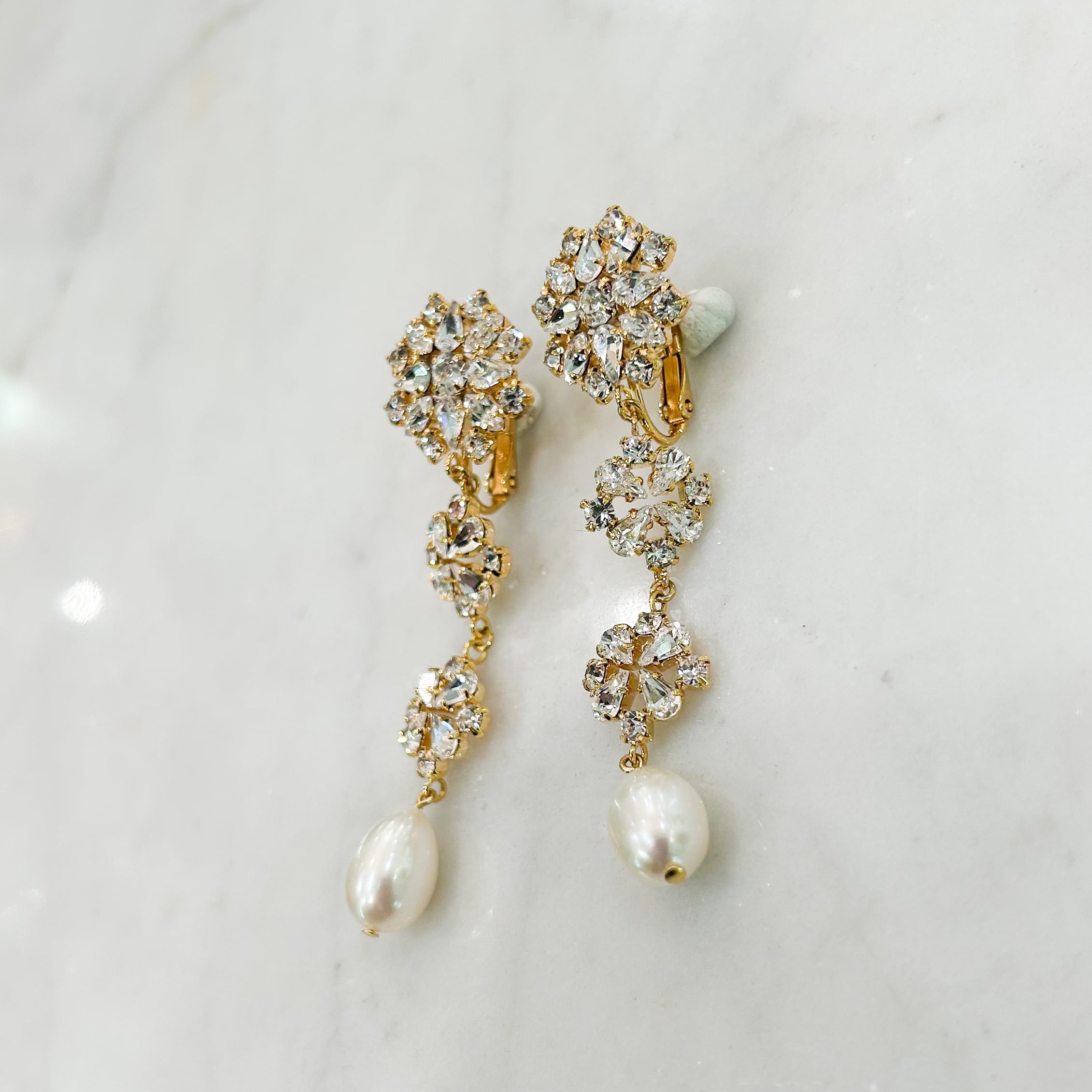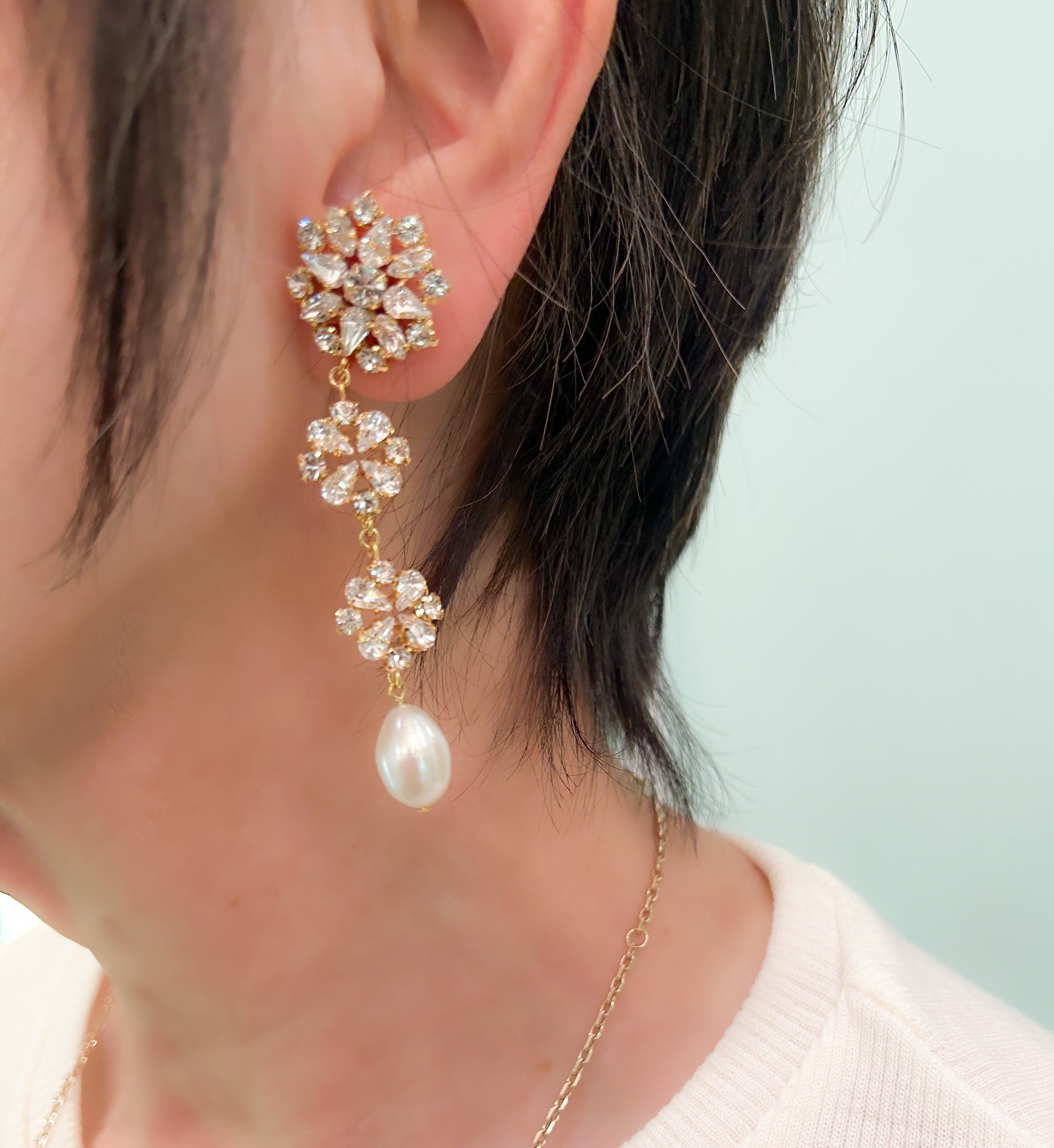 軽やかで繊細なラインストーンの輝きに、真珠のやわらかな優しい輝きの組み合わせ。