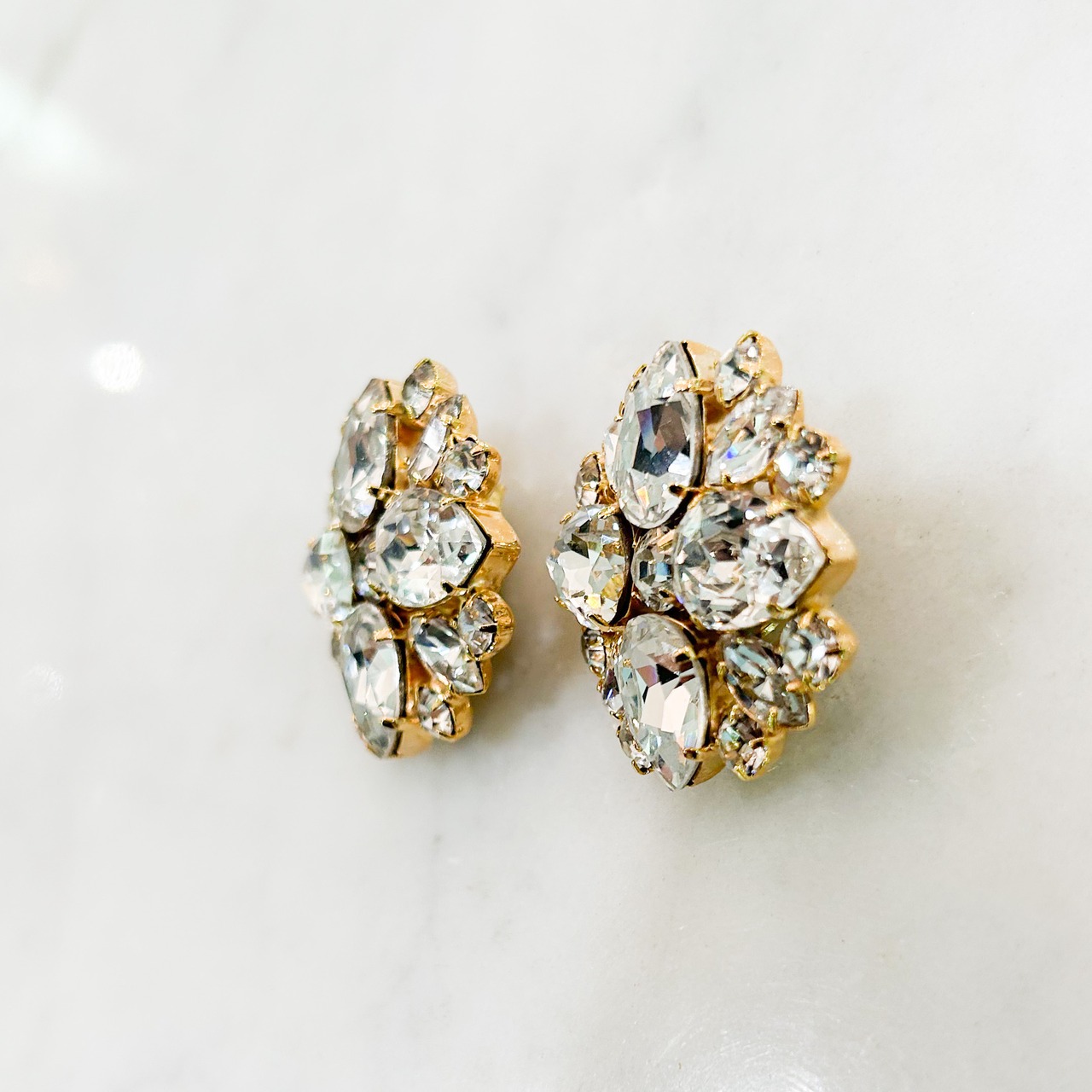 強すぎないゴールドカラーと軽やかなラインストーンな輝きで、しっかりとした大きさがあってお洒落のポイントとなるのに、そんなに頑張らずにつけることができるイヤリングに仕上がっています。