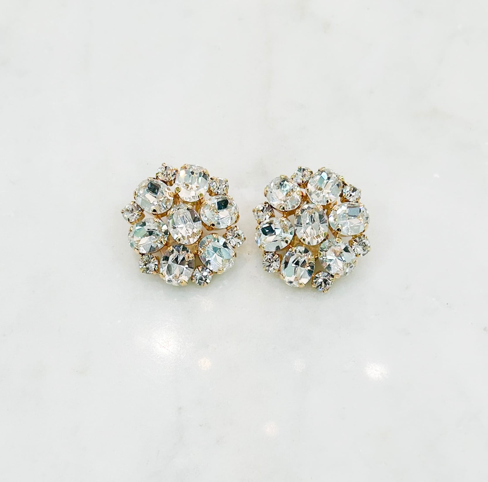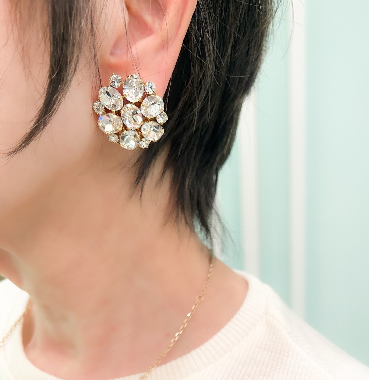 オーバルのラインストーンとまん丸のラインストーンを組み合わせしたイヤリングです。