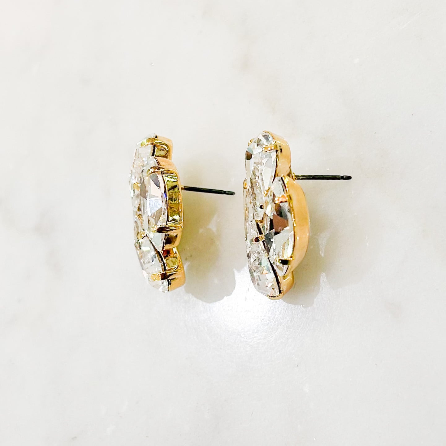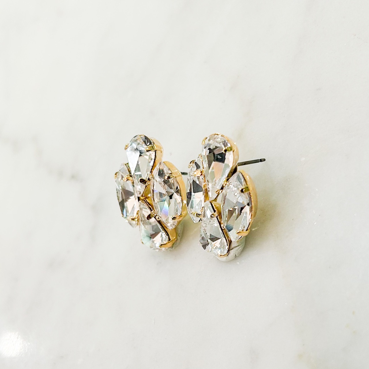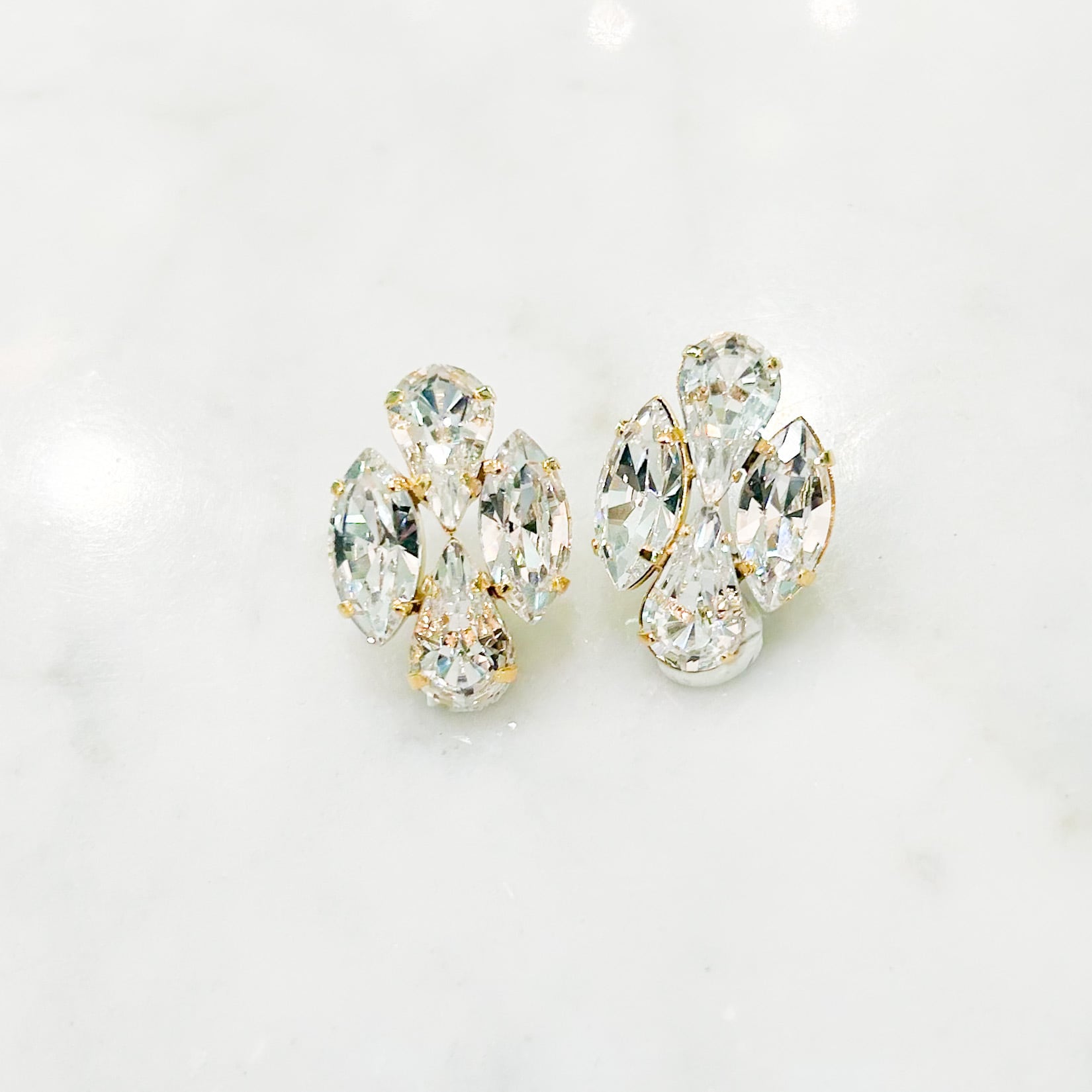 しずく型二つとシュッとしたマーキス型のラインストーンを組み合わせた少し縦長のピアスです。
