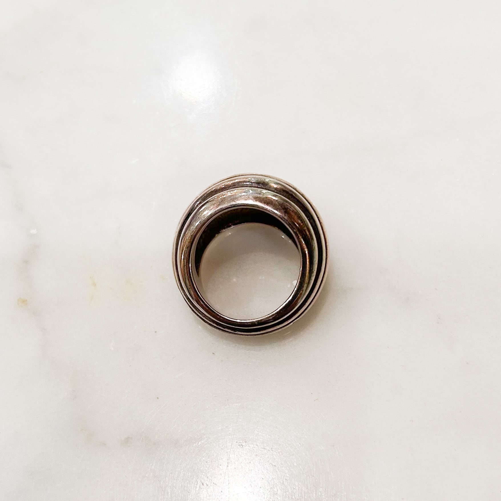 幅が17mmの月甲型のピンクシルバーのリングには幅が3種類の山のような細工が施されています。