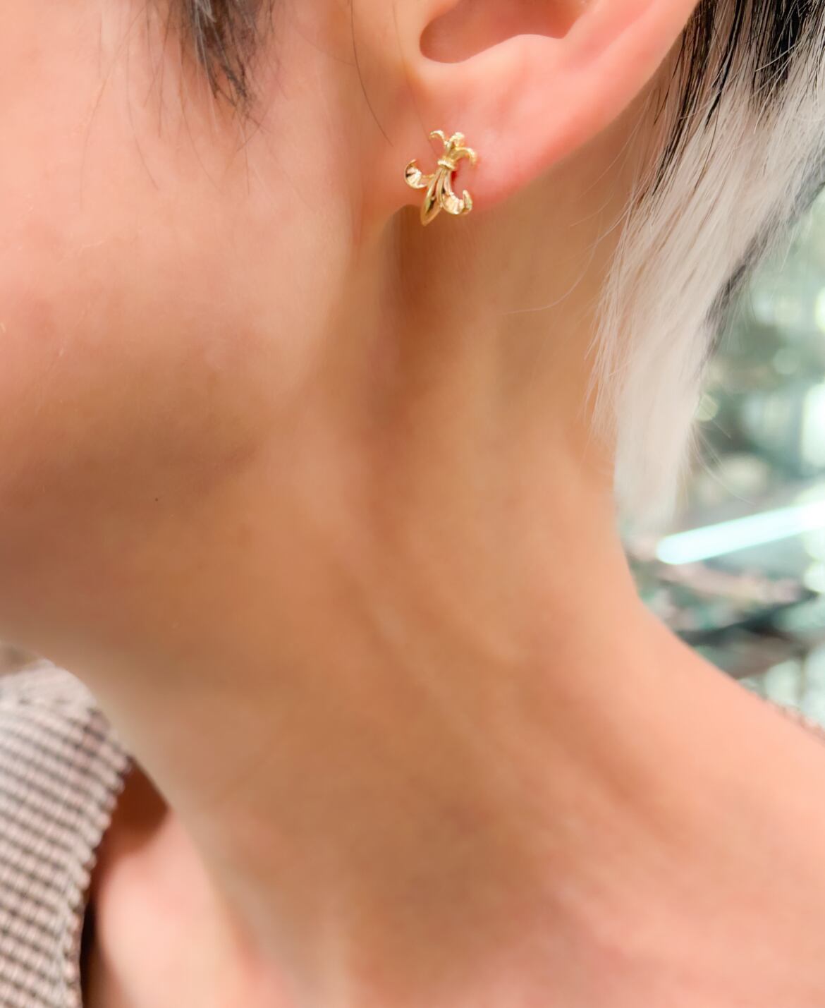 紋をの形がそのままなので、耳に18金製の百合の紋章を飾ることができます。