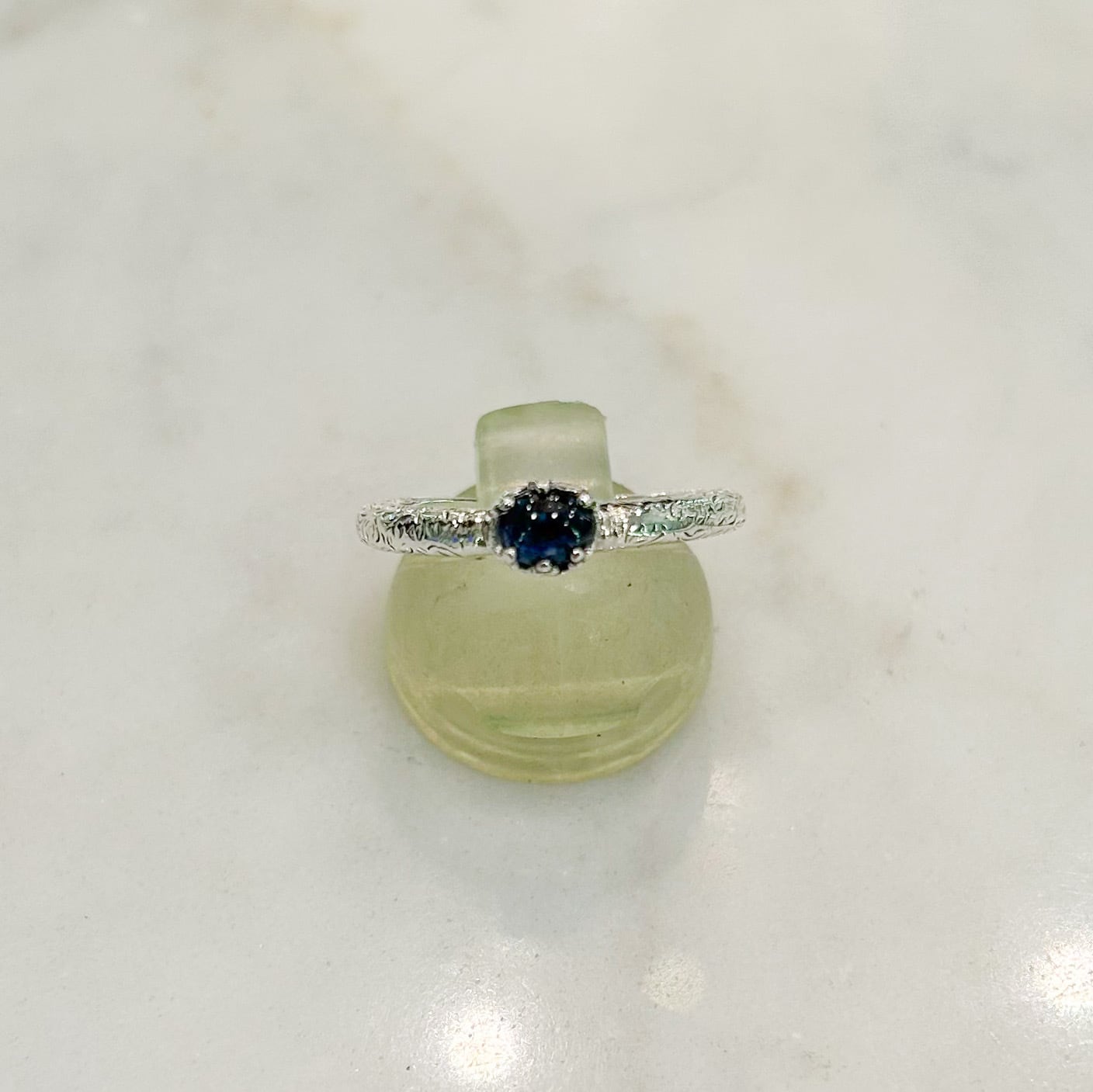 シルバーで王冠留めされた小さなサファイア(0.48ct)のリング