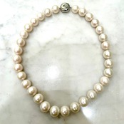 もちろん真珠の間全てに結び目を入れて繋いでいるので、真珠が大きめでもしなやかに首に沿ってつけることができます。