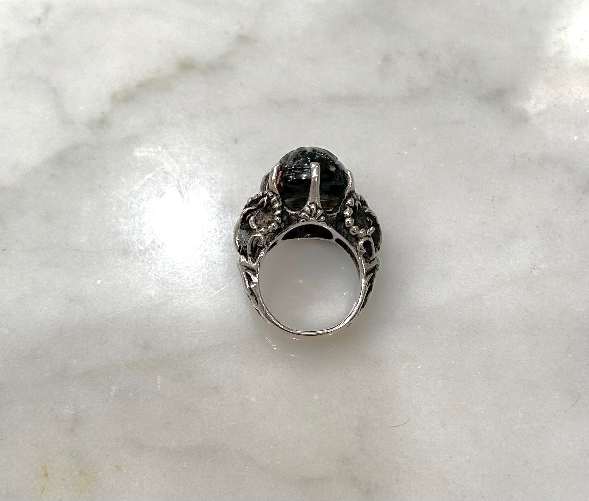福袋的お買い得商品 彫りの施されたトルマリンの銀の山羊リング