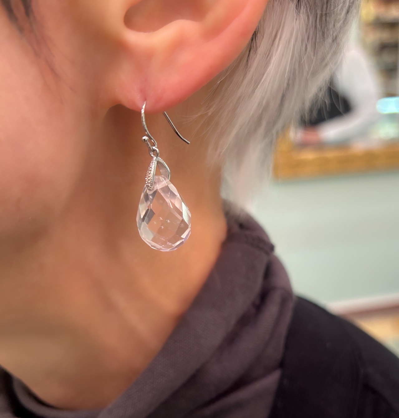 こちらのイヤリング・ピアスの水晶は12×7mmほど。