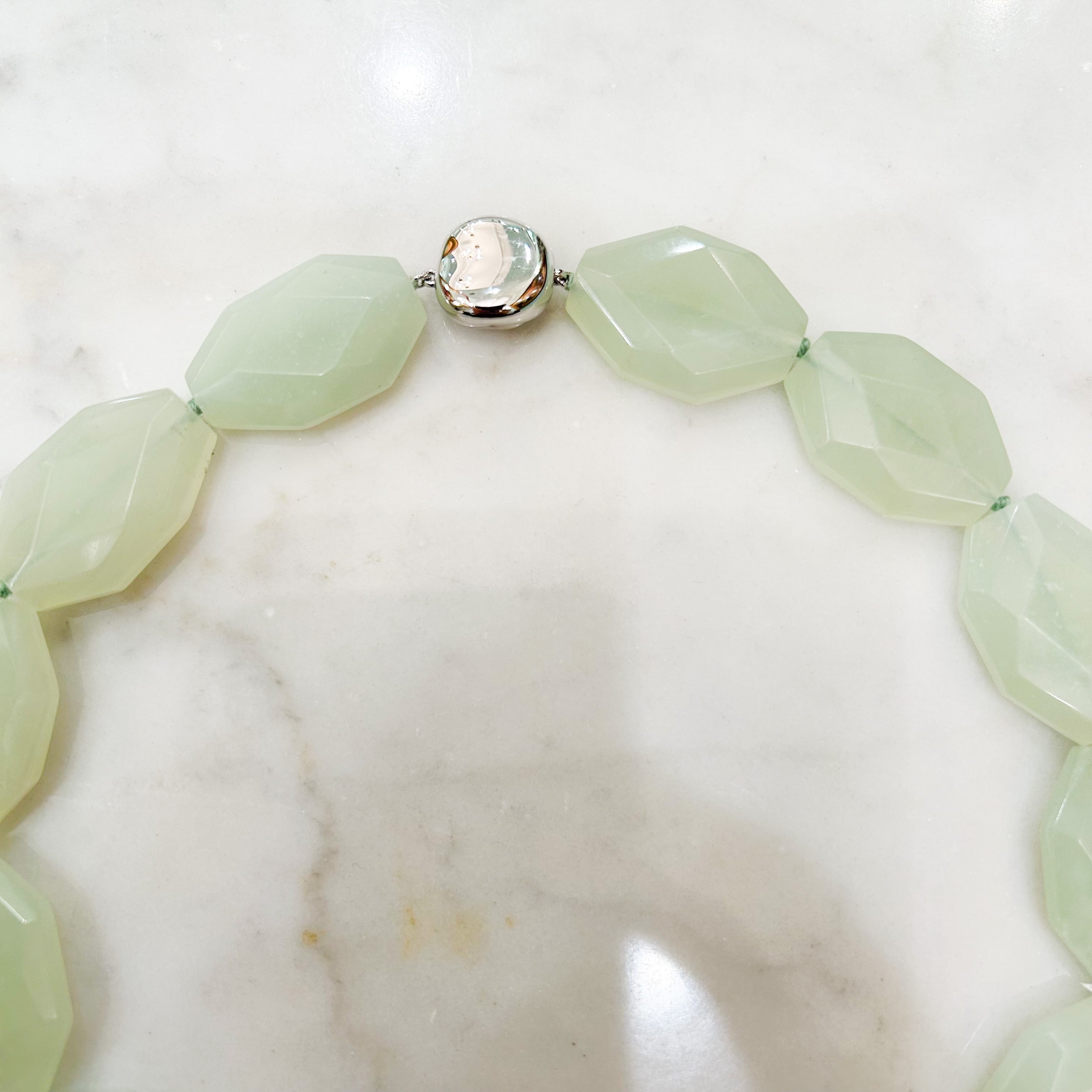 八角形のニュージェイドの大ぶりビーズのネックレス