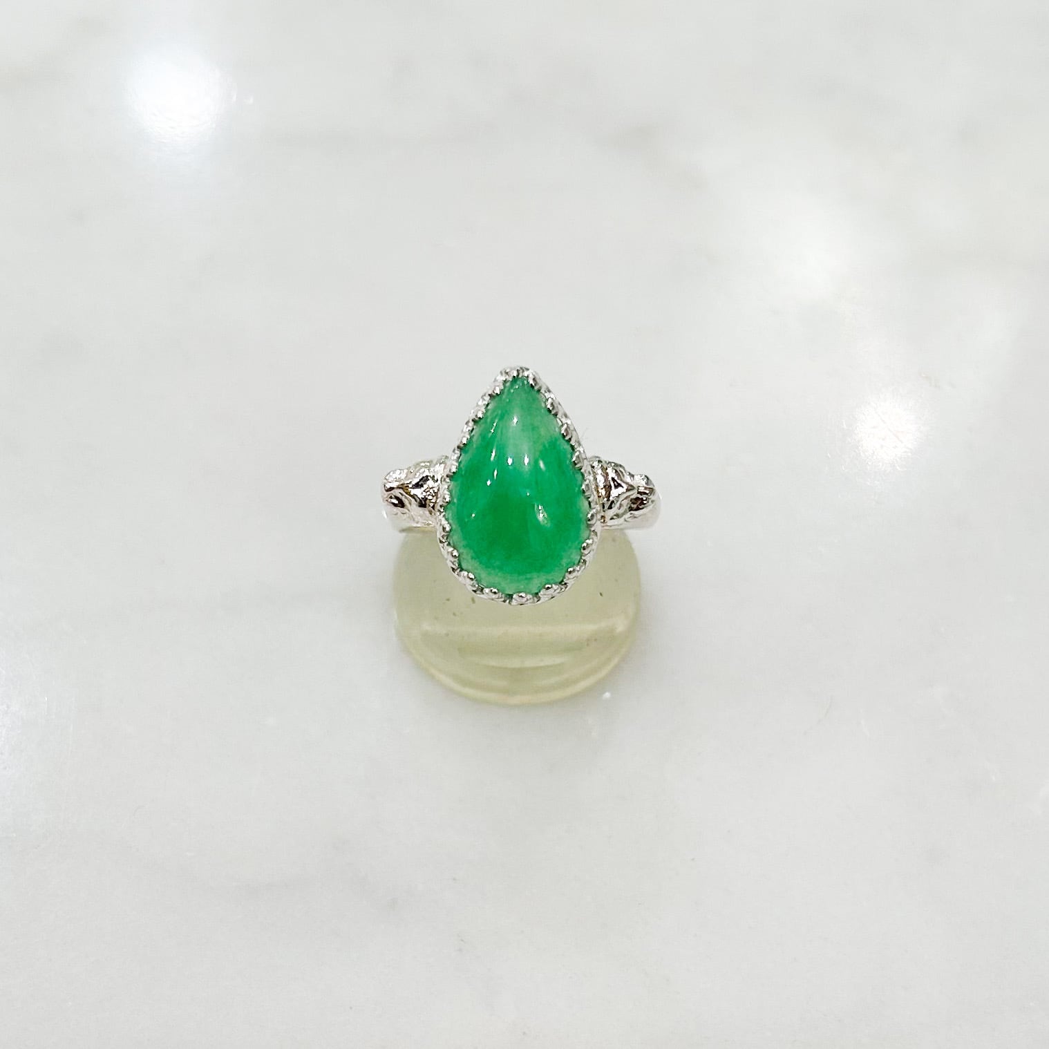 シルバーで王冠留めされたしずく型の玉(ギョク)のライオンリング