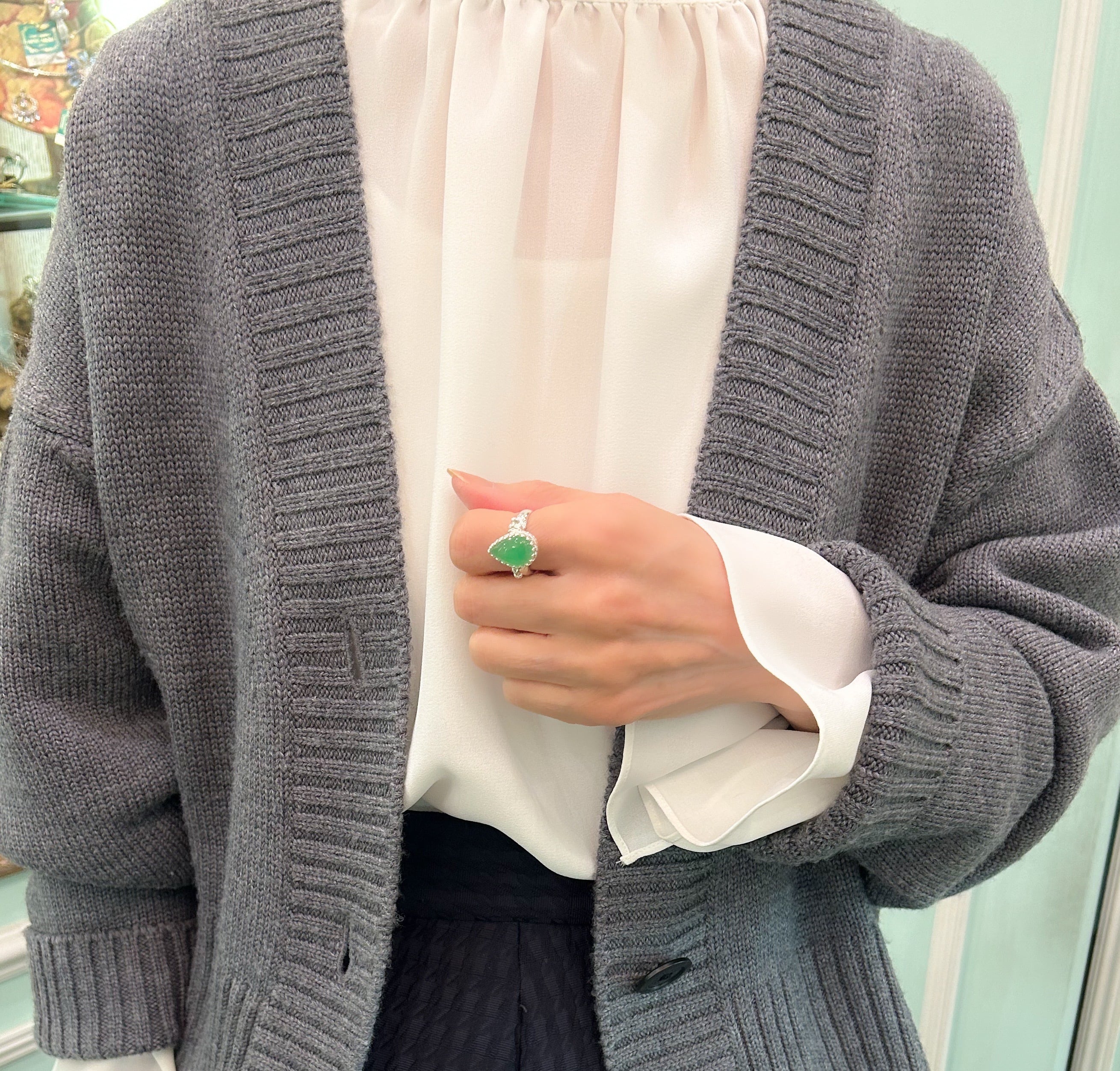優しいギョクのグリーンもこれくらいの大きさがあるとつけた時に存在感があります。