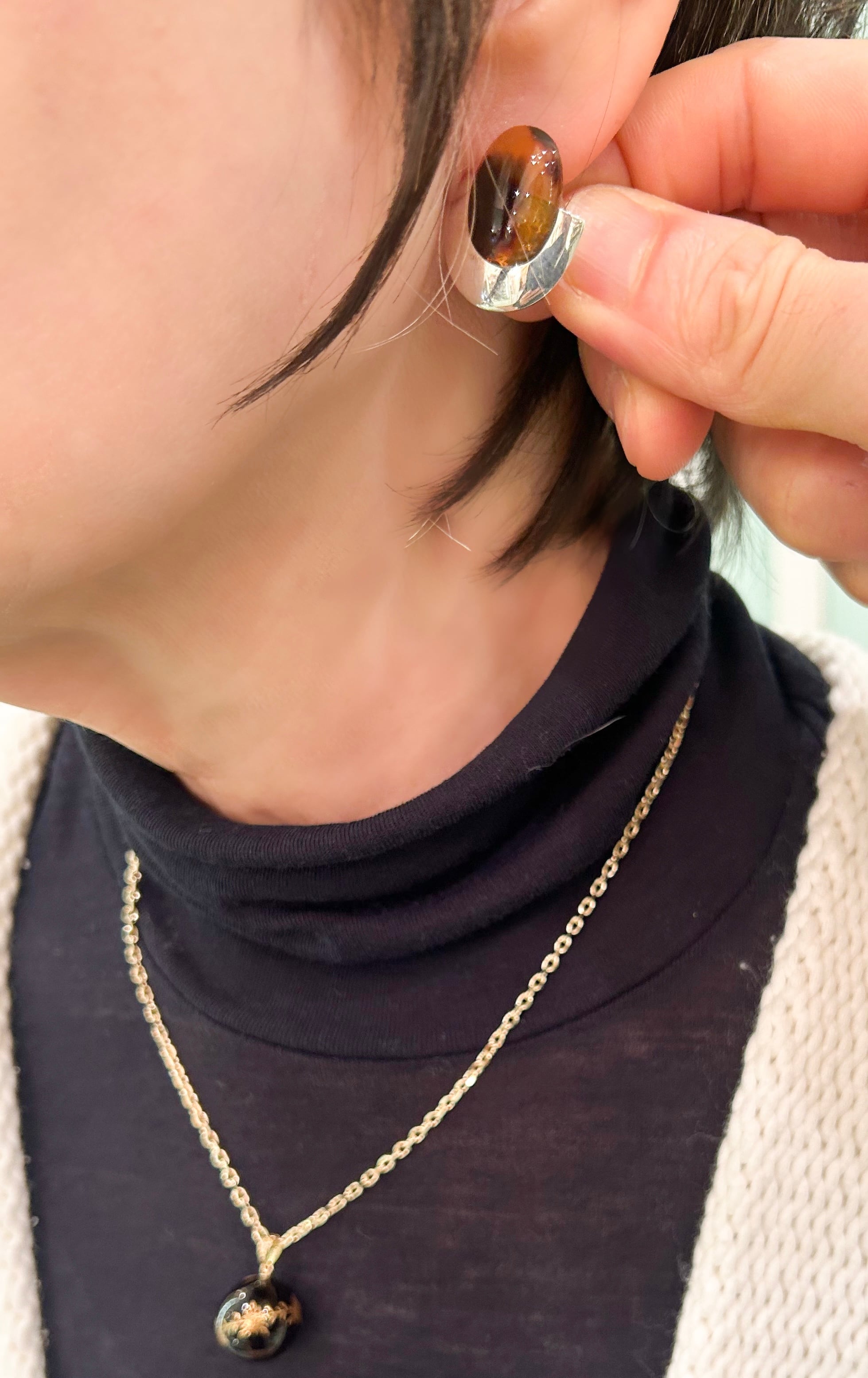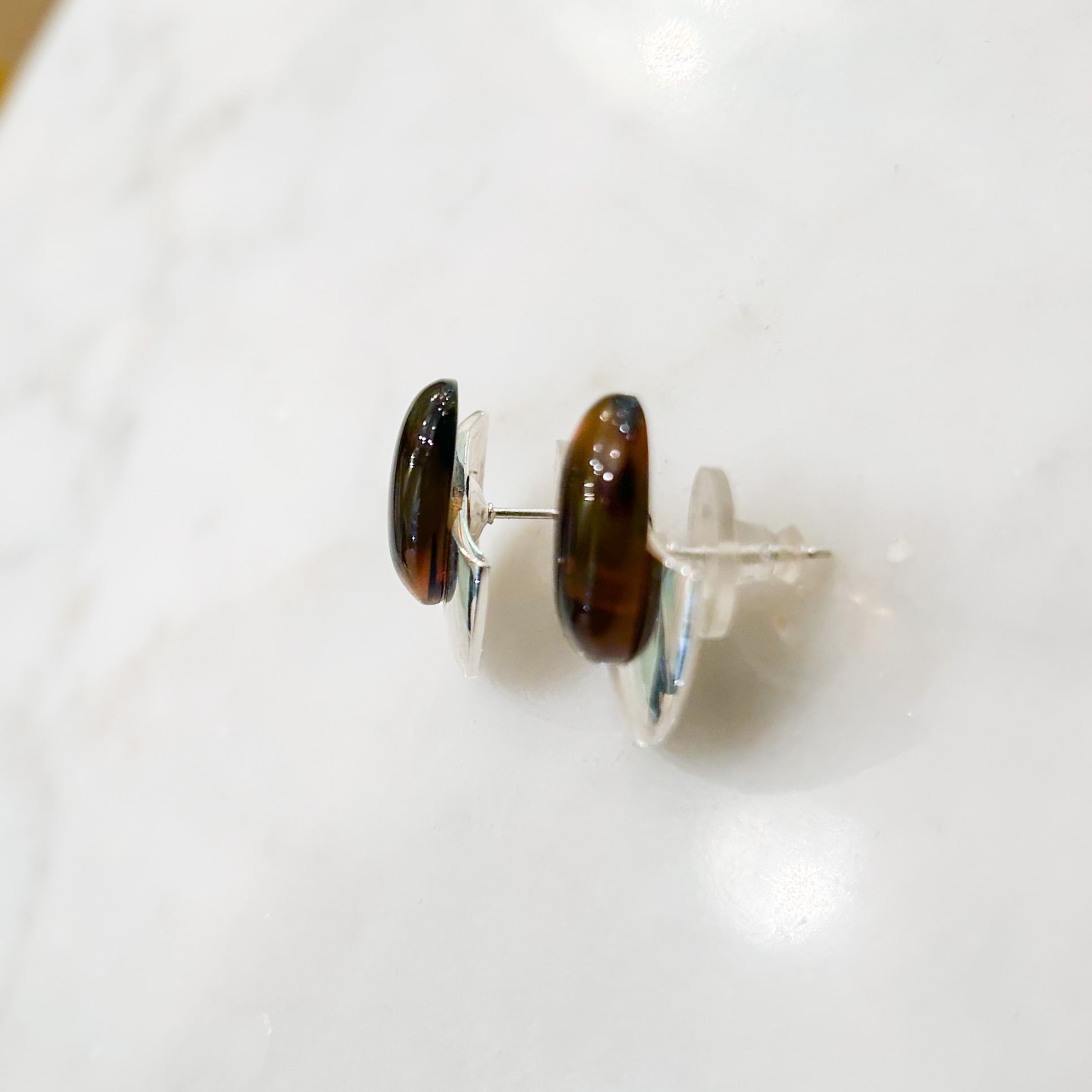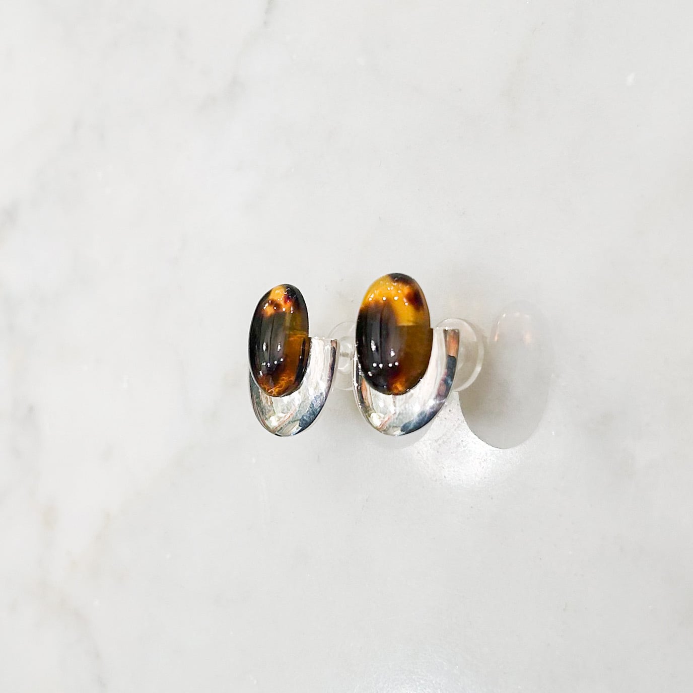 オーバルのべっ甲のカボーション(上散斑)にシルバープレートのピアス(シルバーポスト)