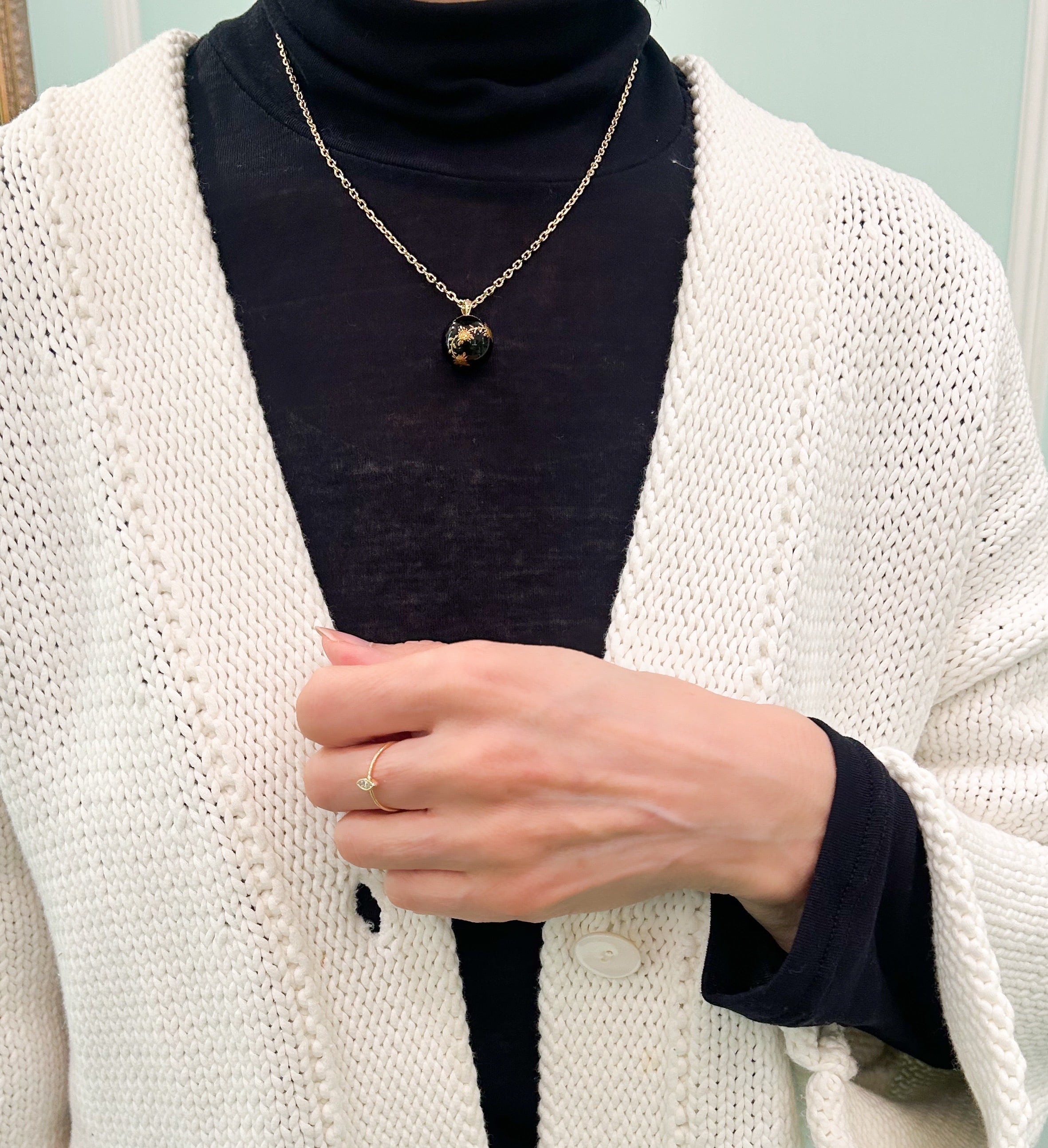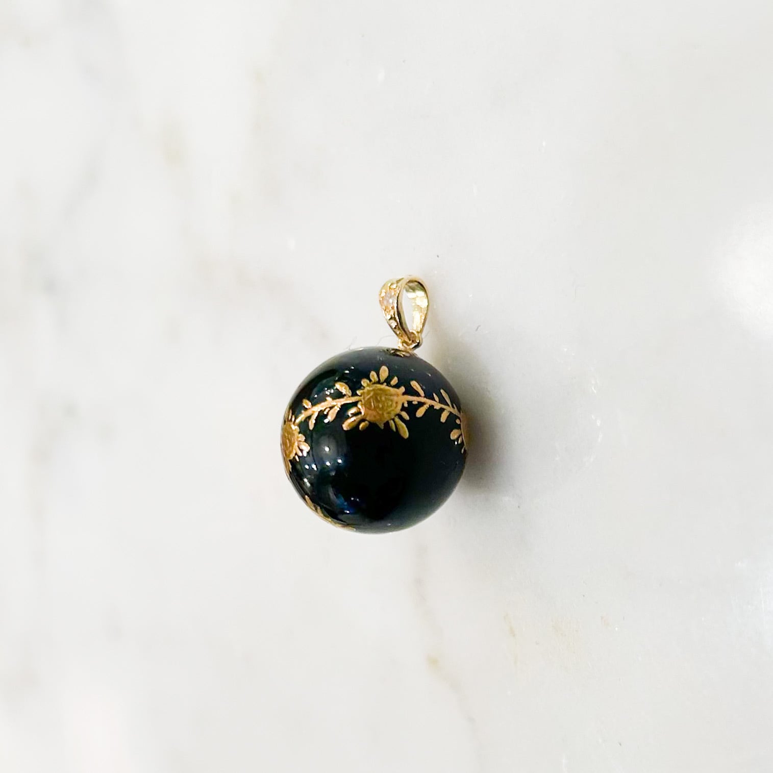 一応正面はあるものの、球体のペンダントなので付けるとコロコロと転がるのですが、模様が螺旋状に施されているので、見え方も変わってきます