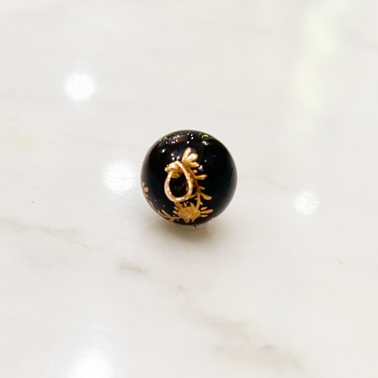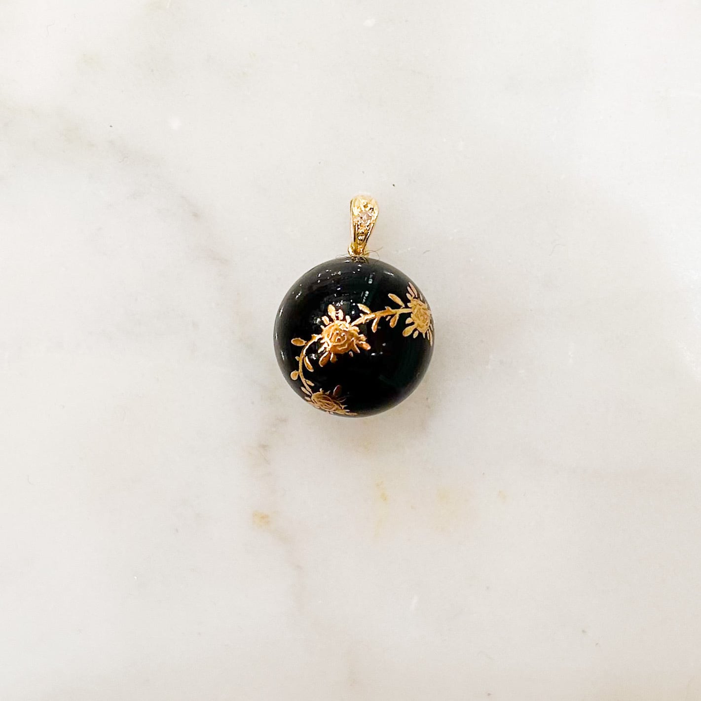 丸いべっ甲(直径15mm)に螺旋の金蒔絵の薔薇模様、ダイヤ付き金具のペンダント(チェーン別)