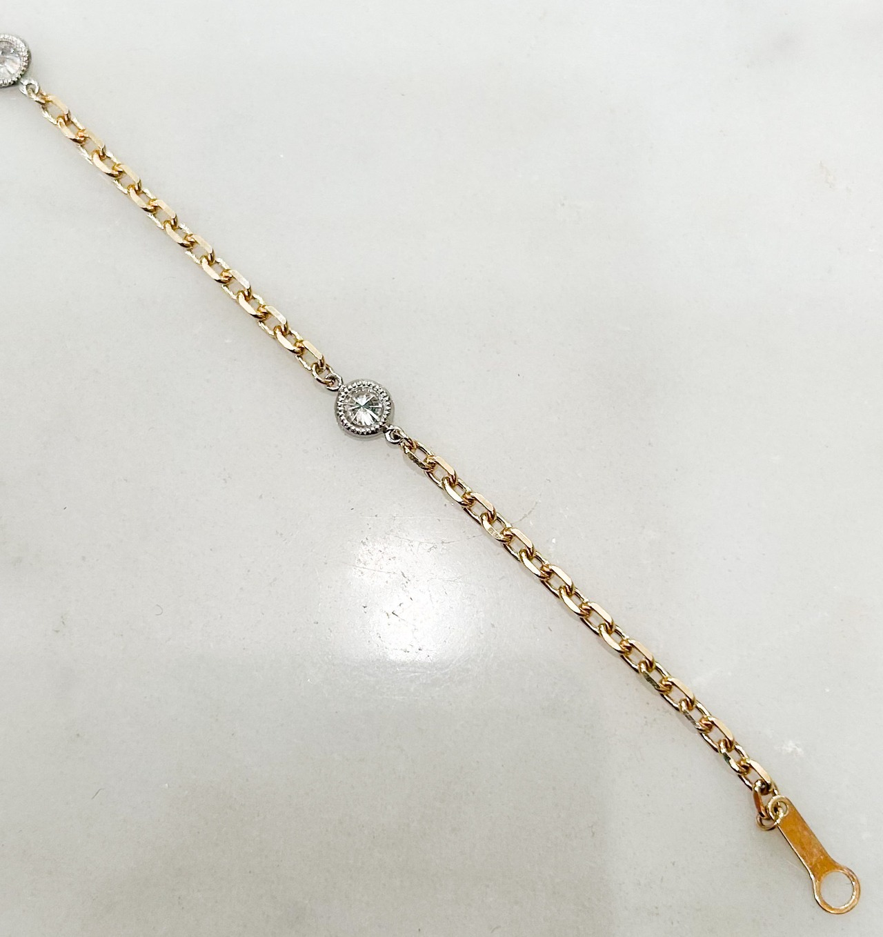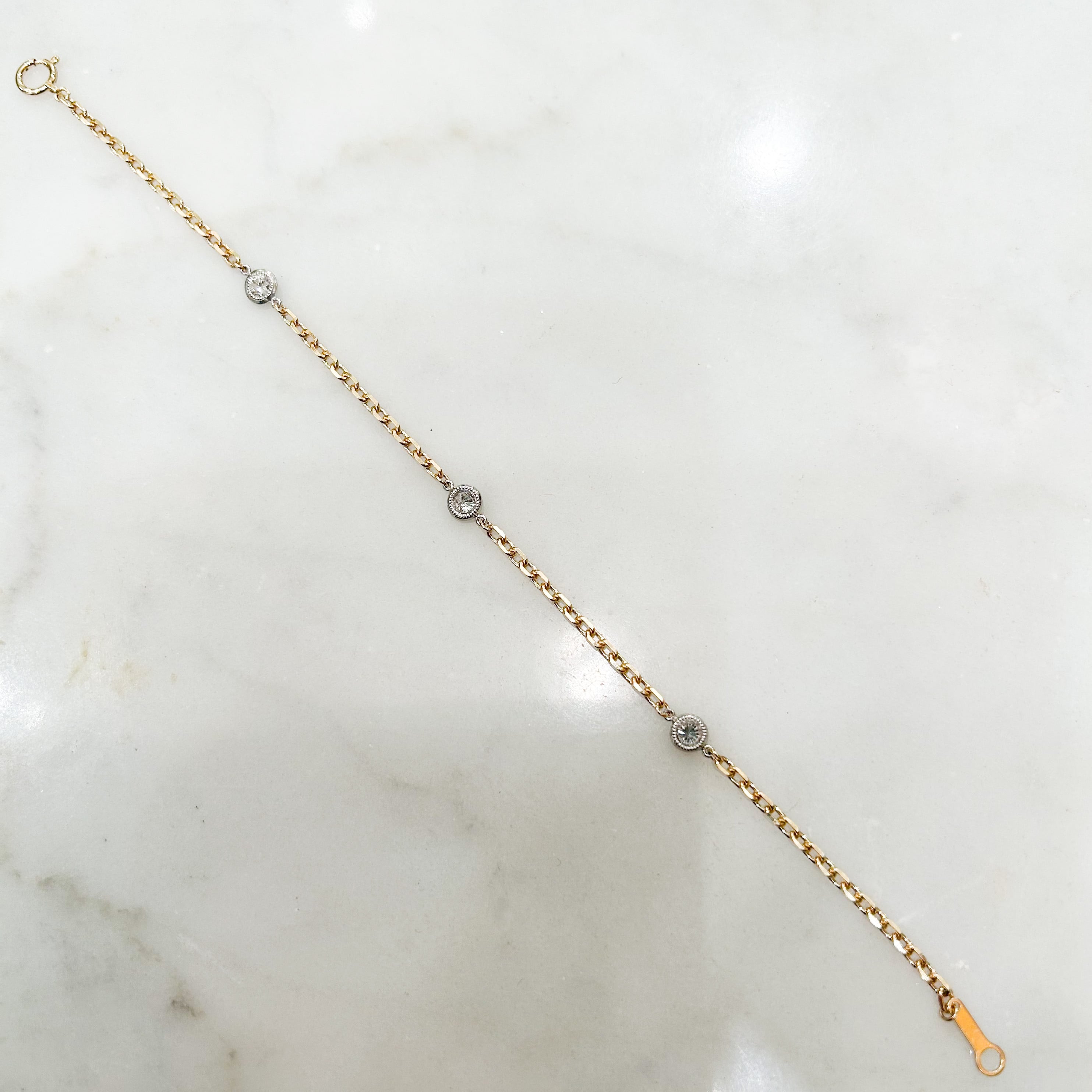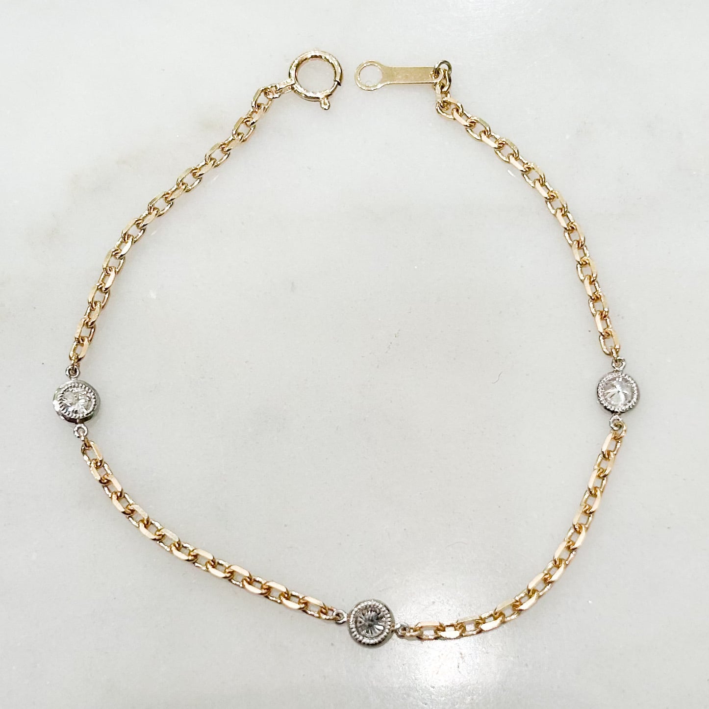 プラチナ枠のダイヤモンド3つ(0.35ct)と10金チェーンのブレスレット