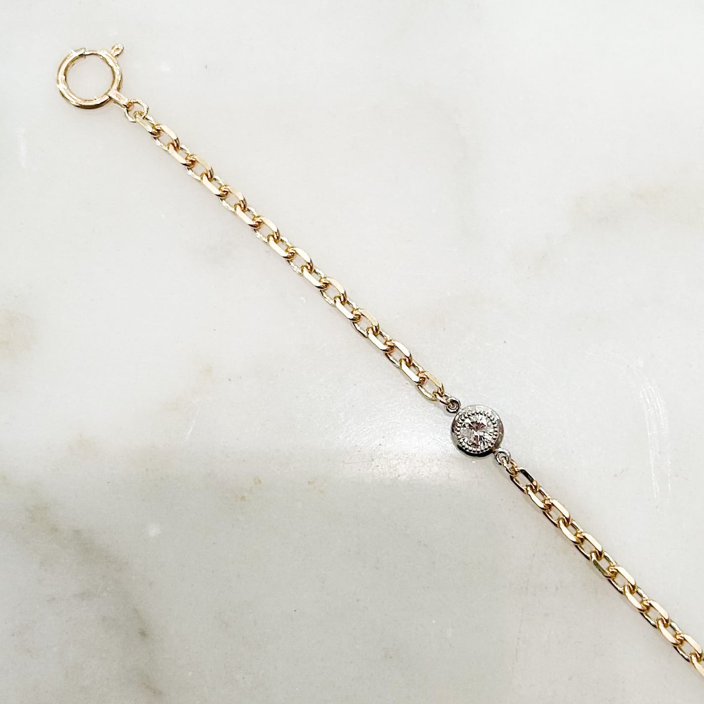 こちらのブレスレットは10金のチェーンで作りました。