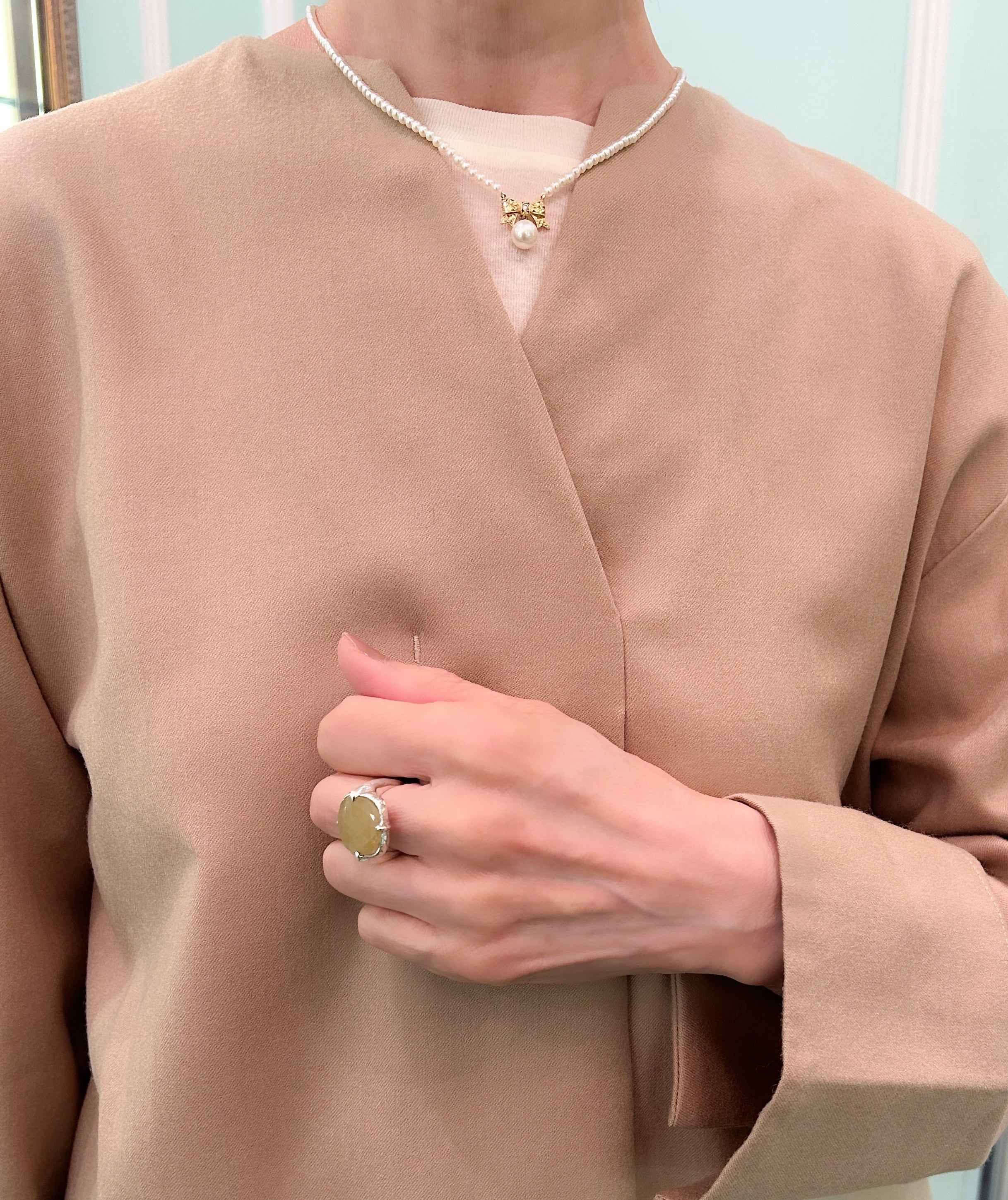 こちらの指輪のサイズ感はマイナス1号くらいです。
