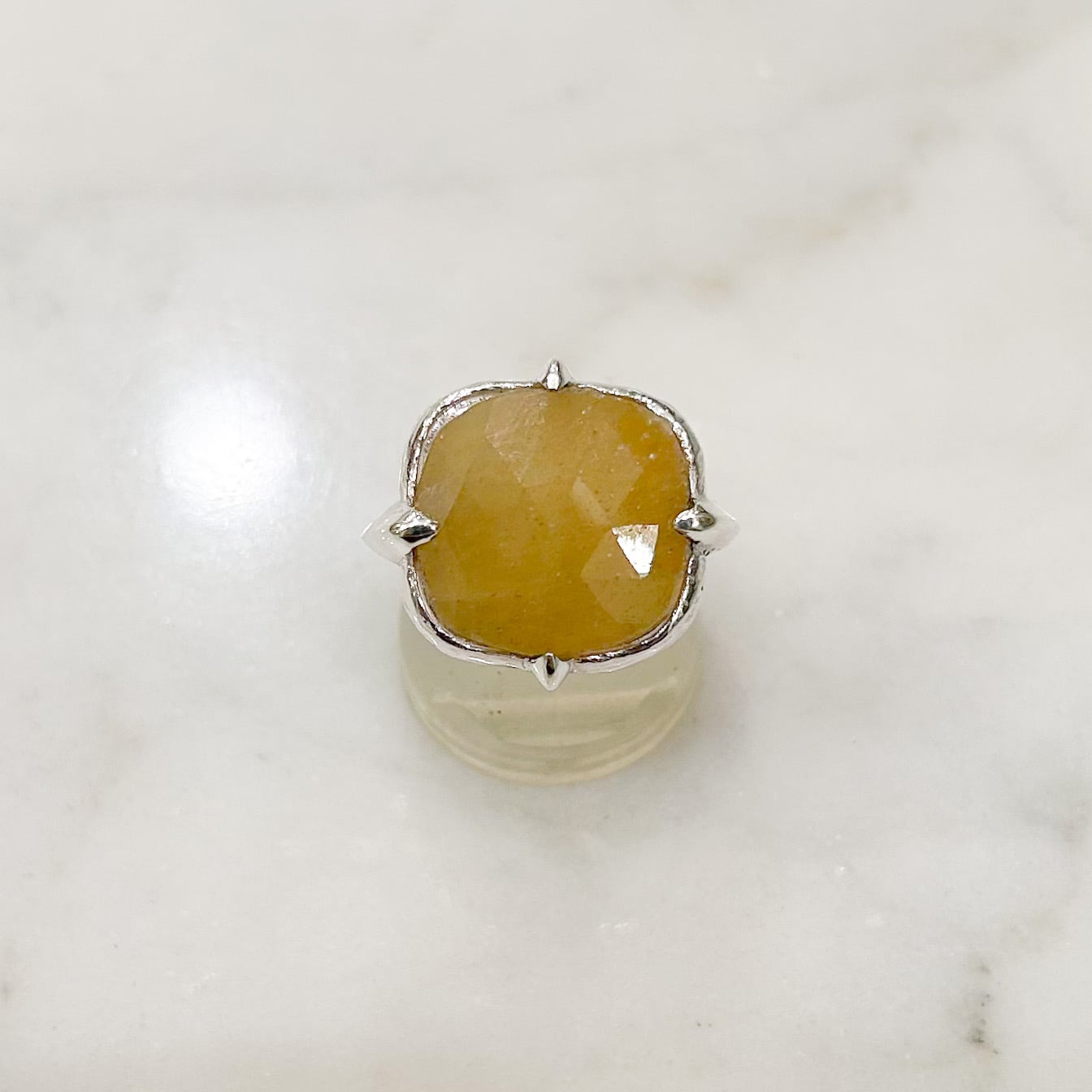 四角い淡いトーンのイエローサファイア(8.2ct)のシルバーリング