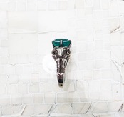 エメラルドを銀の山羊が両側から支える22金の刻印付きリング