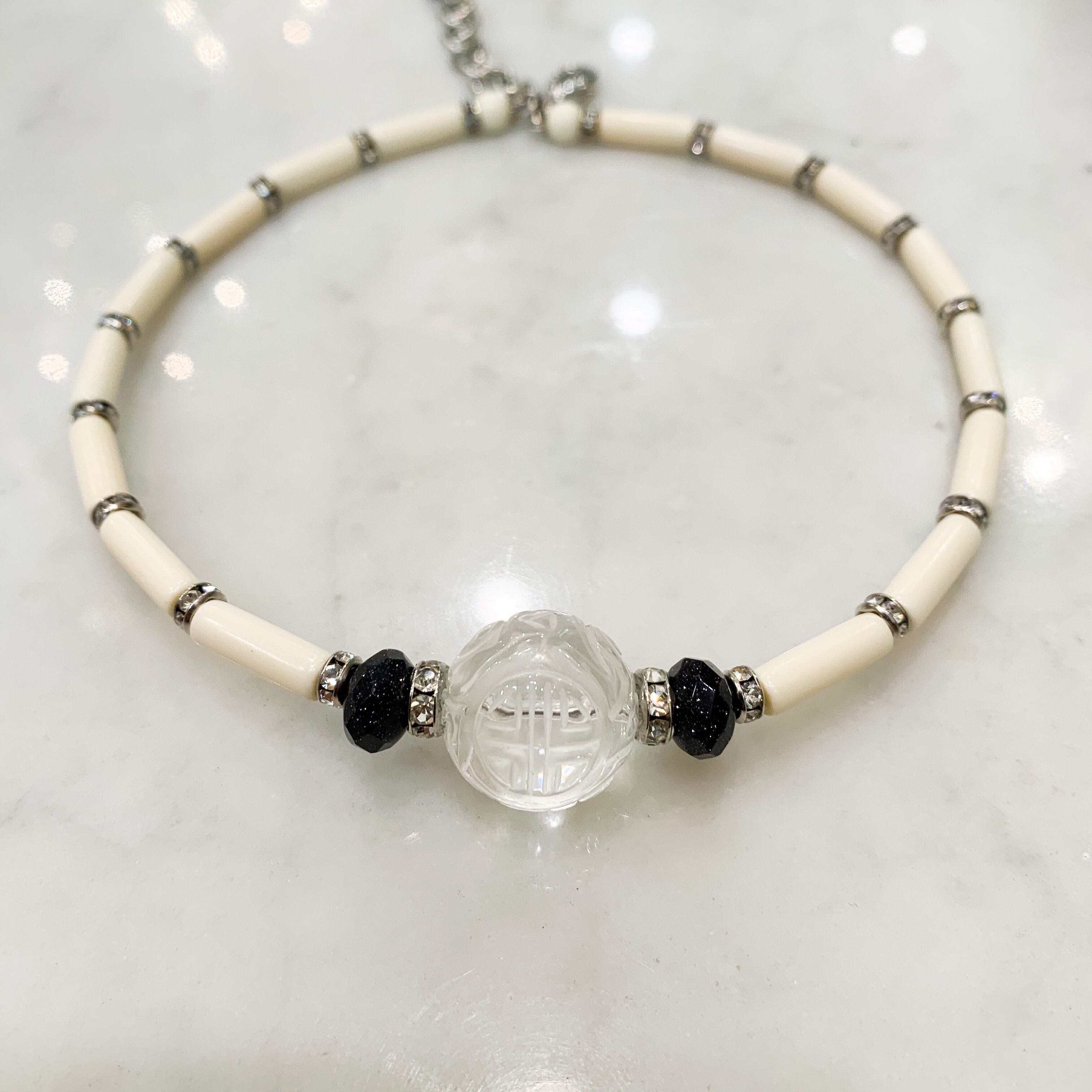 水晶とアイボリーストーン、サンドストーン、ラインストーンのワイヤーチョーカー